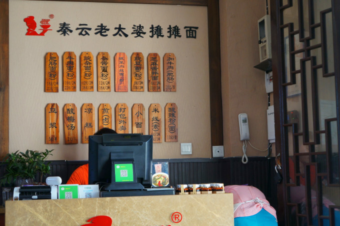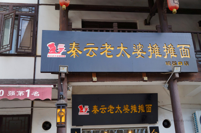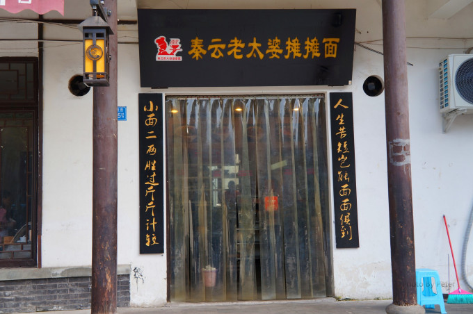 恰逢周末,整个古镇相当地热闹,到处都是拍照的游客,摩肩接踵的感觉让我顿时有了一种到了淮海路的既视感。我们慢悠悠地闲逛着,这个时候肚子又开始提抗议了,没办法我们只得找了个人少的地方拿出了旅行计划书看了看,貌似秦云老太婆摊摊面口碑甚是不错啊,拿出高德地区搜了搜倒是离这里不远,几分钟之后我们就赶到了那里。