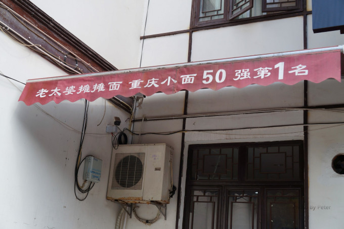 还没进面馆呢我们抬头就看到了“老太婆摊摊面,重庆小面50强第1名”,看到这句话我们真的是惊了,敢情重庆市里还有个小面协会呢每年都会给所有的面馆整个排名出来呢,如果没有的话,那这个是不是打的虚假广告呢?!