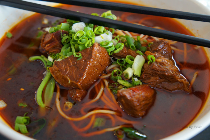 不过基本敢说自己排名第一的味道自然也不会差到哪里去,要不然这招牌没过几天肯定就被人给砸了。进去一看面馆并不大,只有5、6张桌子,不过整个店面看上去挺干净的。既来之者安之,点了三两牛肉面和酸菜肉丝面后就坐在椅子上静待美食上桌了。