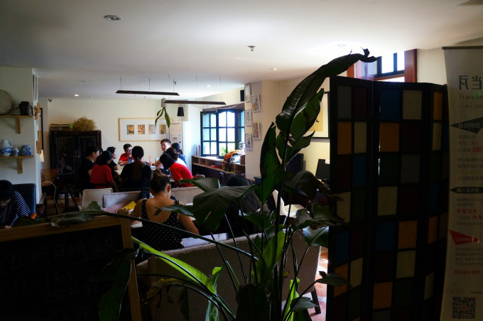 到了4楼进入了旅店大厅,青年旅舍相对于其它酒店的文艺特质扑面而来。一桌人聚在一起高谈阔论,貌似是一群背包客在商量第二天去哪里玩;旁边的沙发上坐着一对小情侣,依偎在一起咬着耳朵说着悄悄话;还有零星的几个人或坐或者躺,翻越着杂志,整个旅舍的氛围那叫一个轻松闲适,这个才是青年旅舍该有的气质嘛。