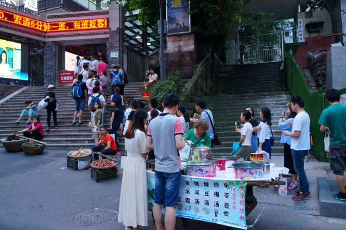 从洪崖洞可以打车到长江索道,一般司机看你是外地人的话会开价20多,实际上走路的话也不远,大概也就10来分钟的路程,不过得记着得从最上面的地方开始走,不然要绕路的。重庆就是这样,刚来的时候真的特别不习惯,别的城市是二维的,它是三维的,因此在这里导航并不好使,手机上的GPS信号也常常丢失,因此在搞不清楚往哪儿走的时候还是采取最原始的方法—直接问路吧。