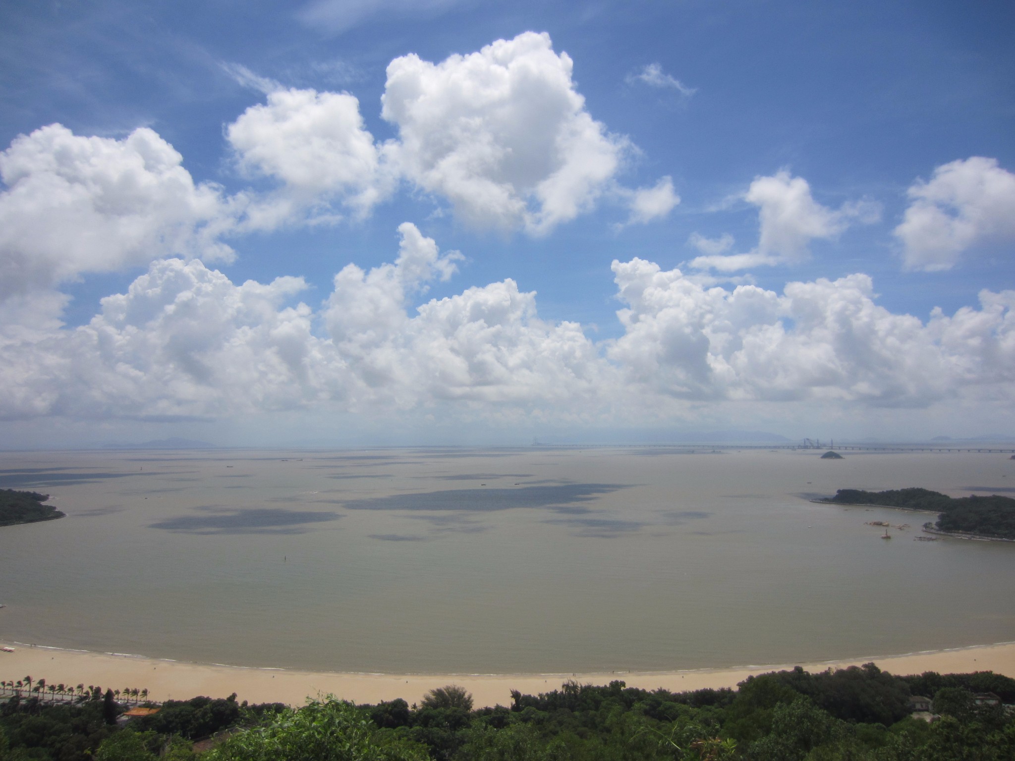 尽管今天天气预报珠海会有中雨-大雨,看着天上时不时的一朵大乌云飘过,还是没有击退我今天要登山的心,美丽的香炉湾,竟然给了我蓝天和白云。