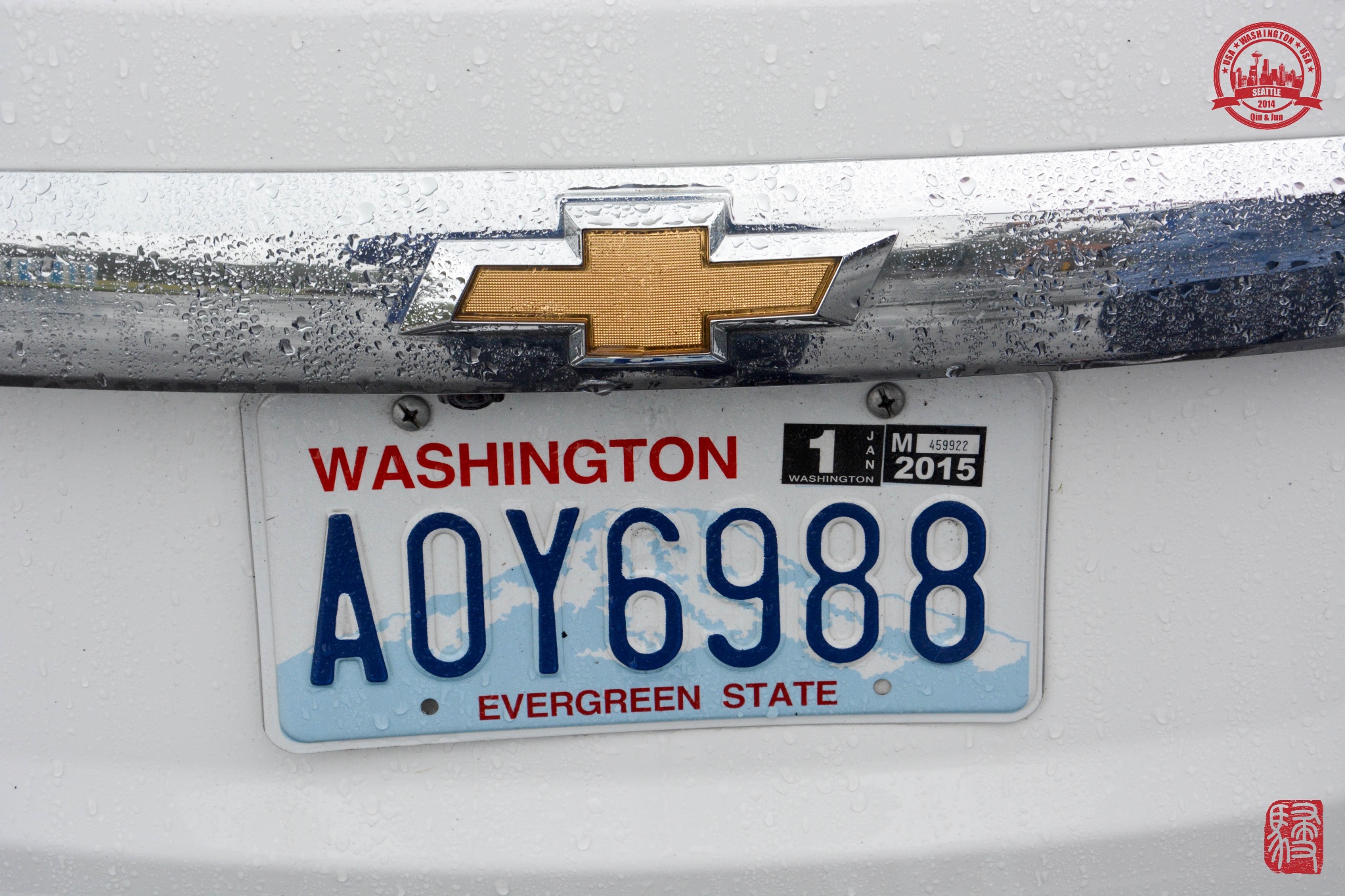 。车牌上背景雪山就是雷尼尔山了,也是我们此次的目的地之一