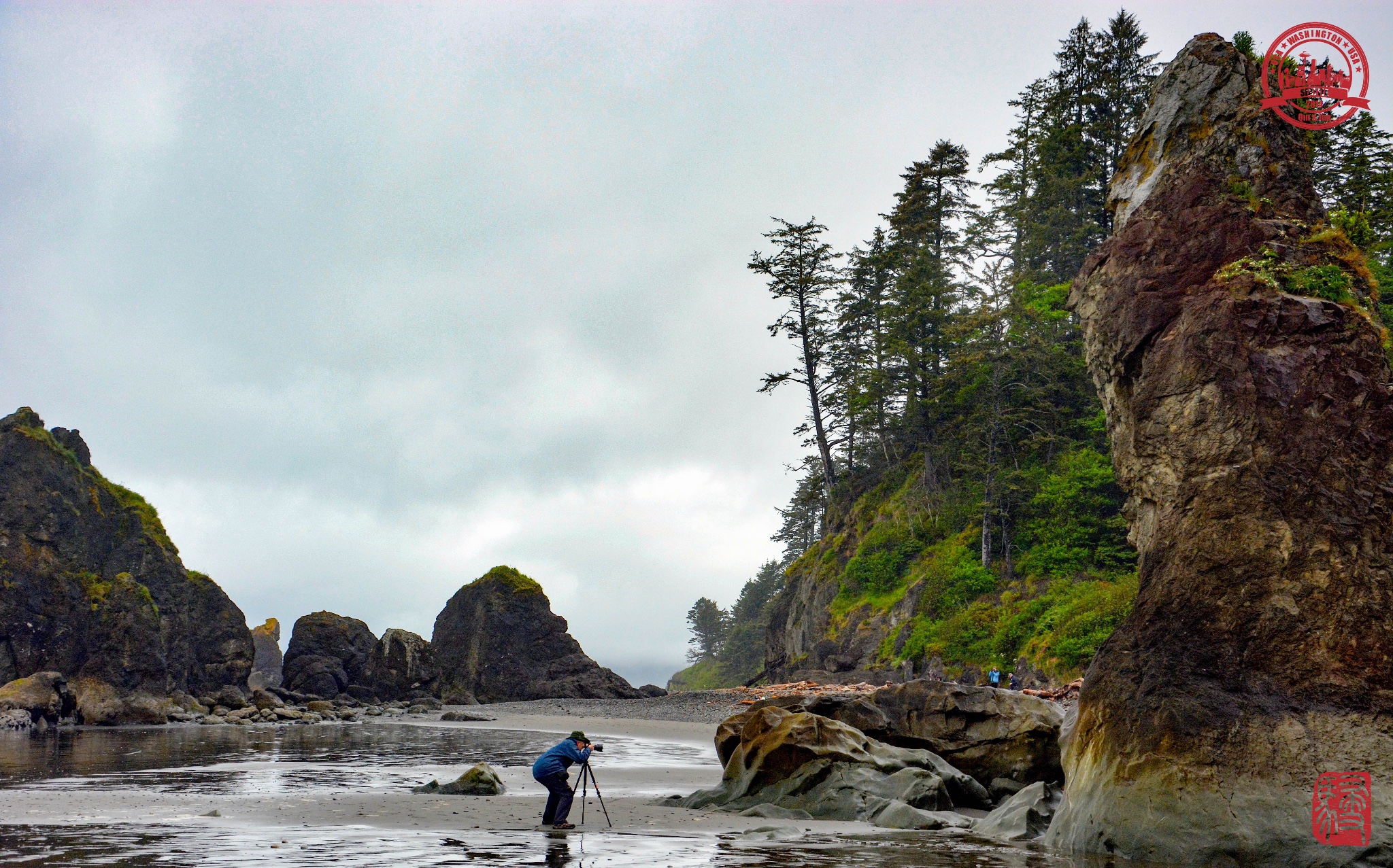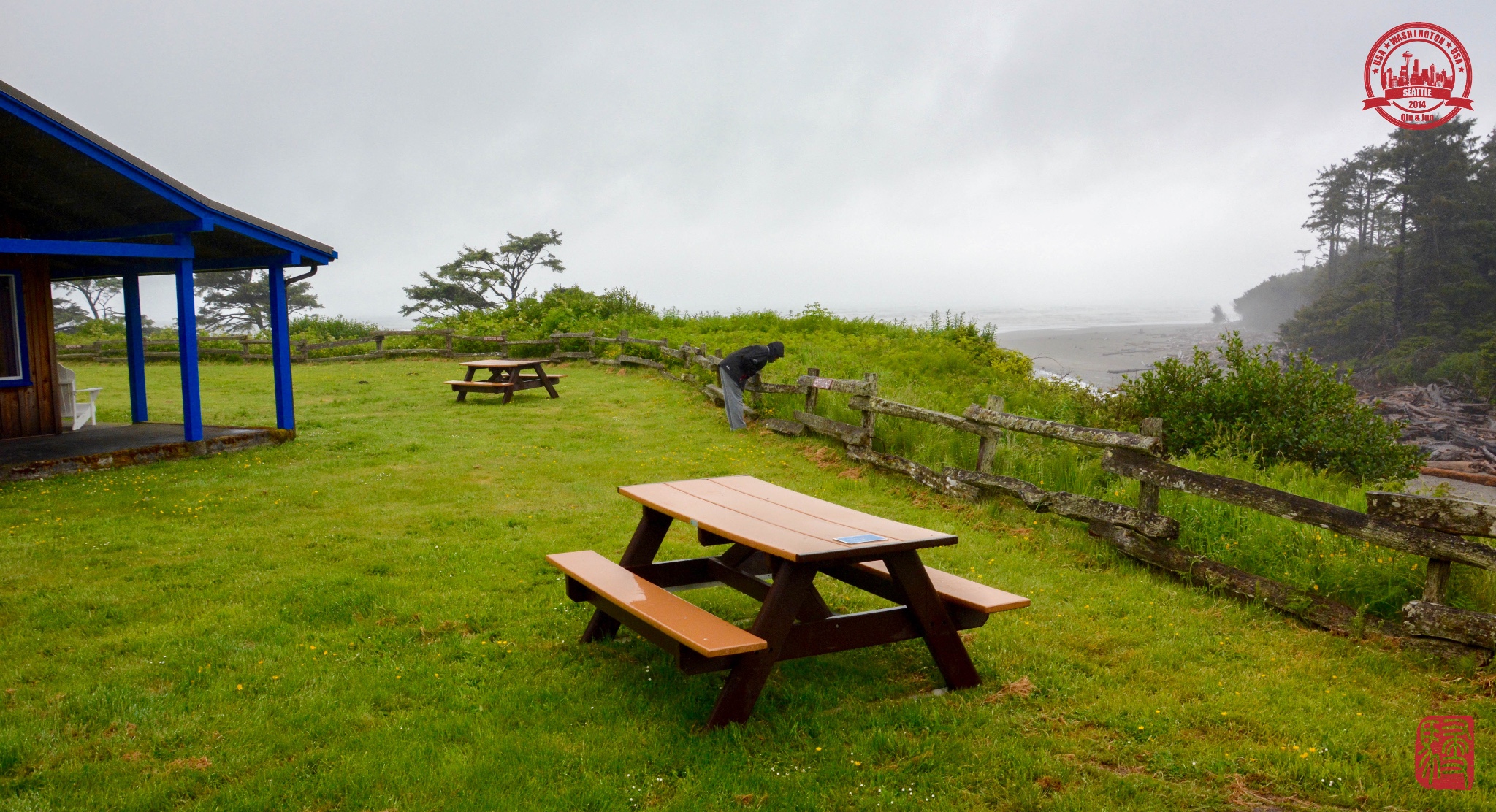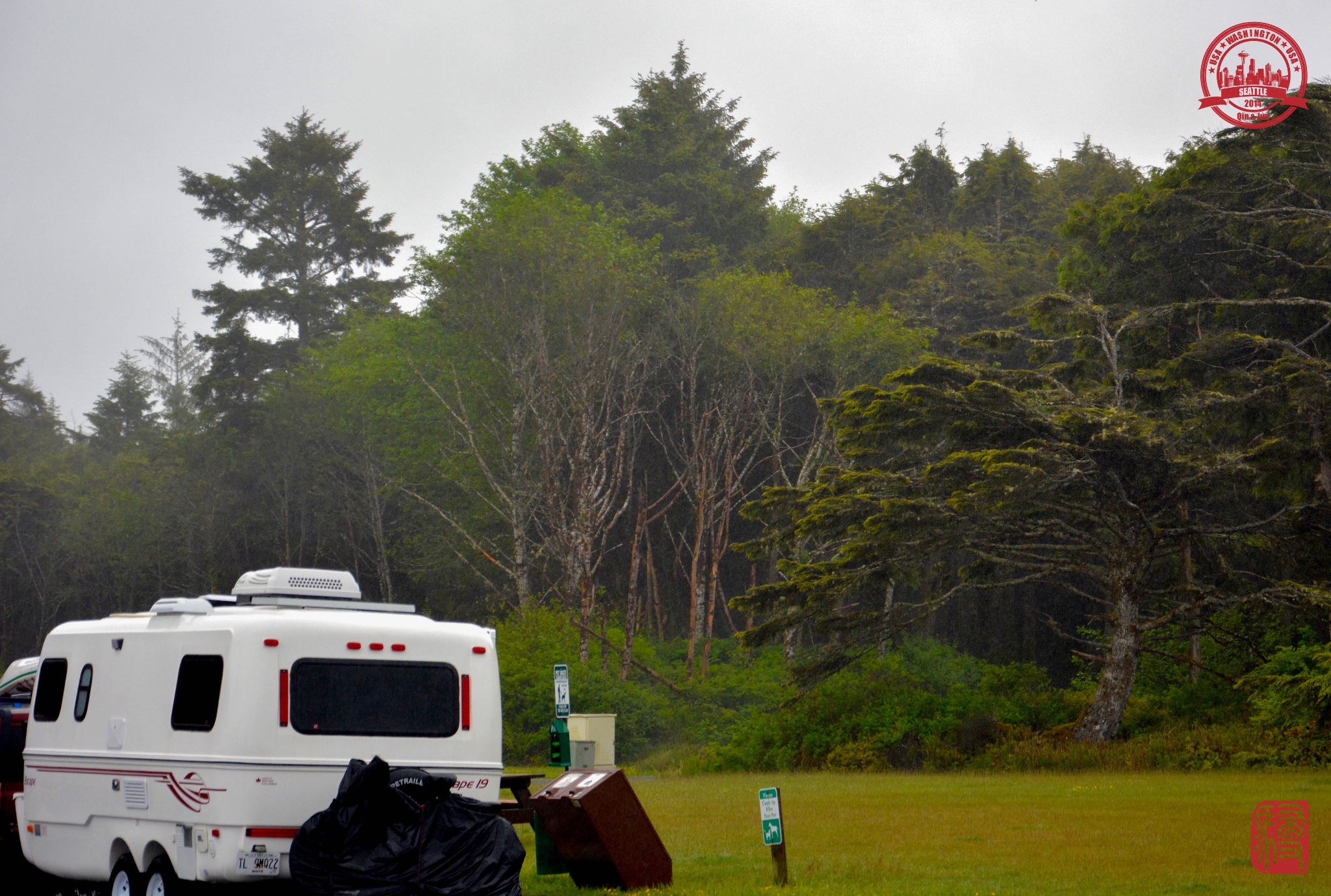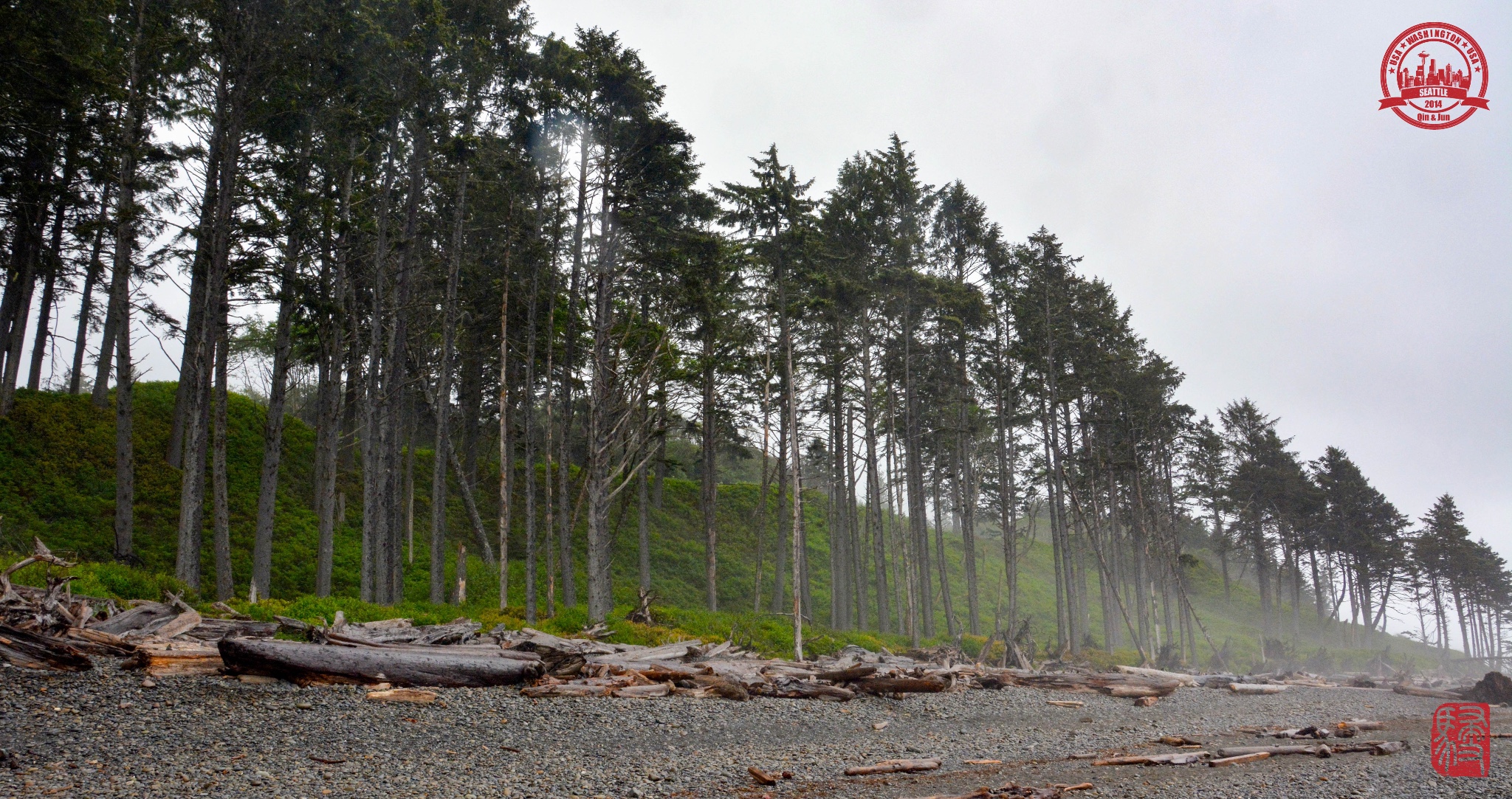 这天一早出门就阴雨绵绵,到了Kalaloch连太平洋都是灰色的,果然是西雅图啊,全年大部分时间都在下雨的城市!