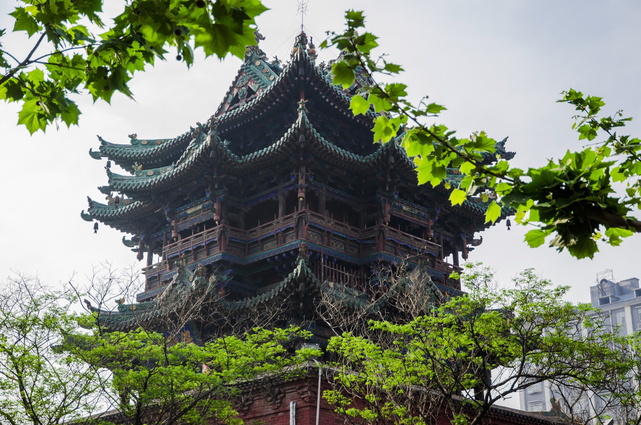 十字骑街鼓楼,下部可通行,上部二层阁楼,十字歇山顶。