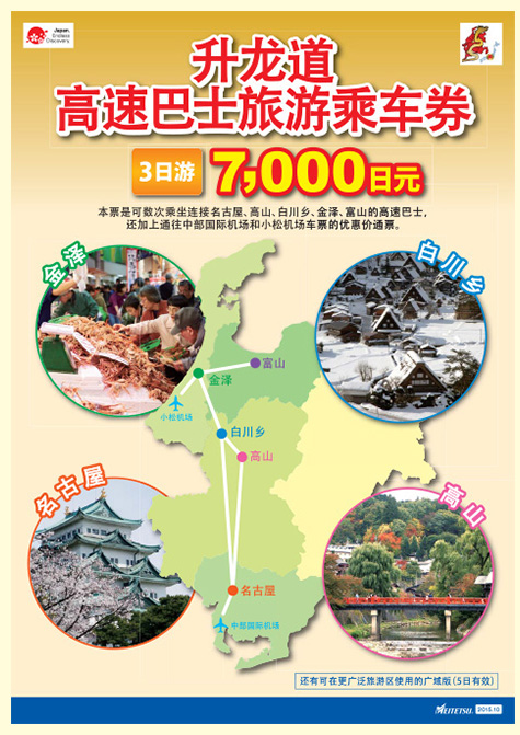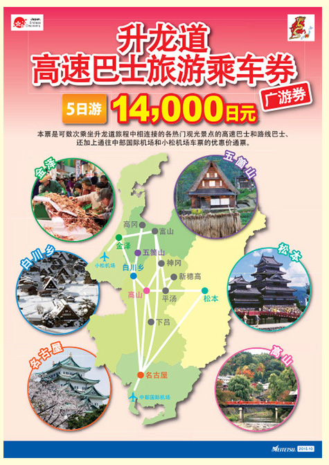 只有名古屋- 中部机场来回一次、名古屋- 高山、高山 -白川乡- 金泽这三条线路。注意名古屋和中部机场的来回也是要在3日内乘坐的,像我们去5天,如果买3日的pass的话,到机场的一程是浪费的。