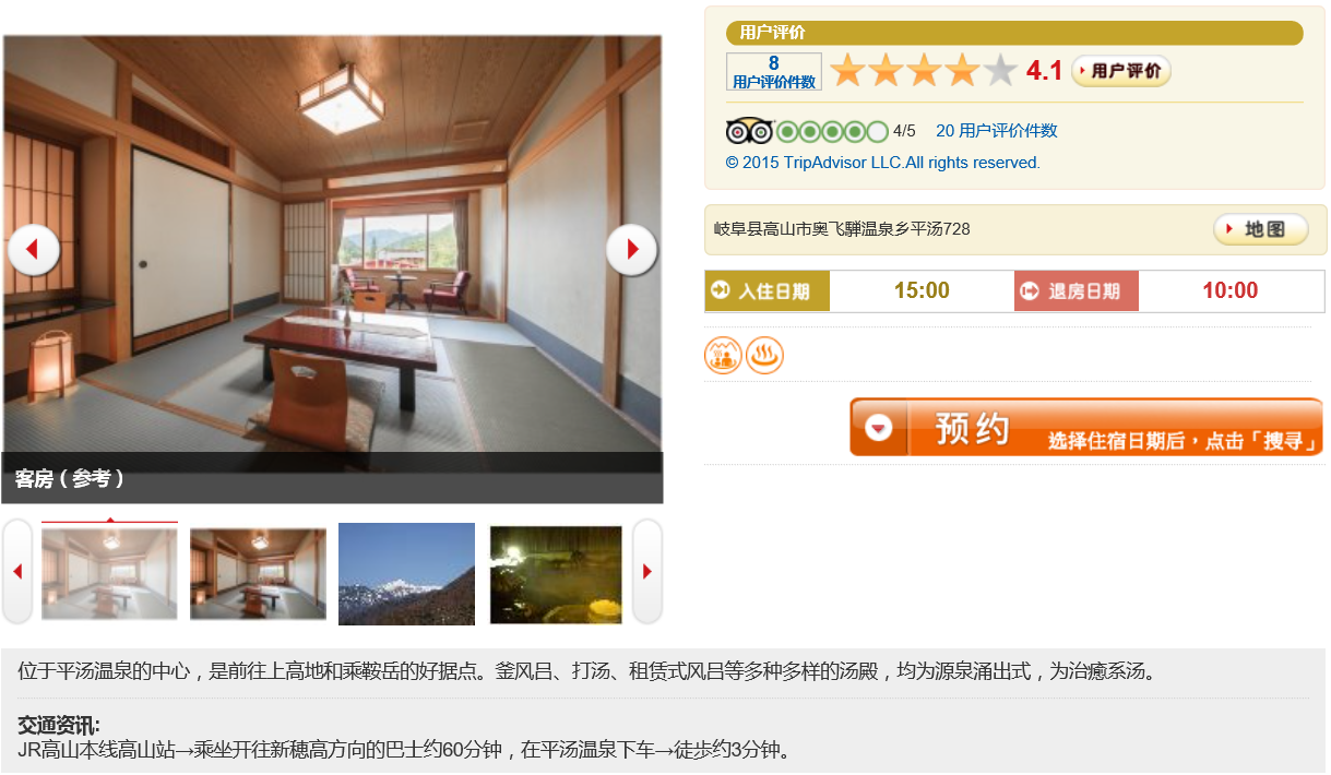 这次除了在平汤温泉的住宿是在e路东瀛 ****** 上预定的,其他都是在booking上定的。