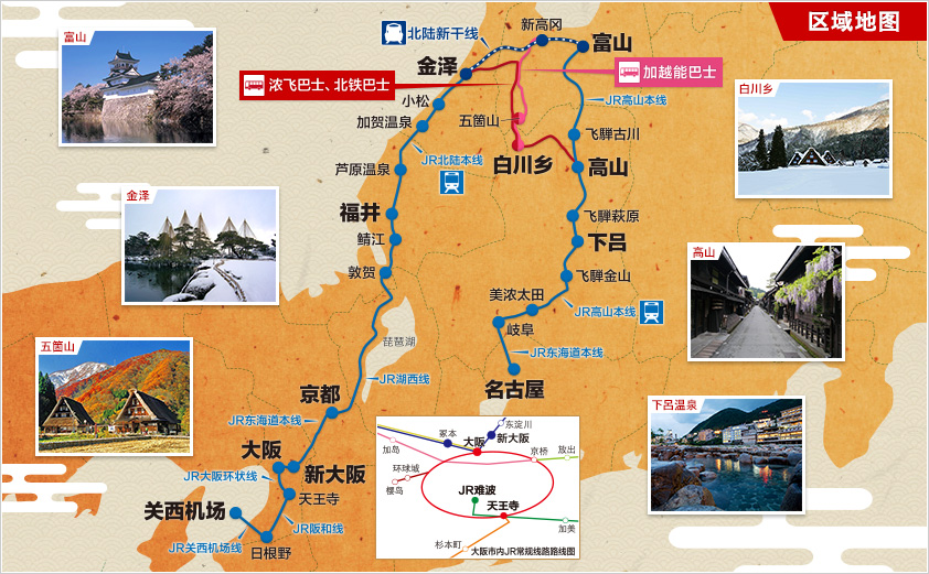 从下面的路线图看,主要适合去中部地区+京都大阪的童鞋,是可以坐新干线也可以坐大巴的pass。由于我们这次不去大阪京都,而且还要去新穗高和平汤,所以没有买这个pass。