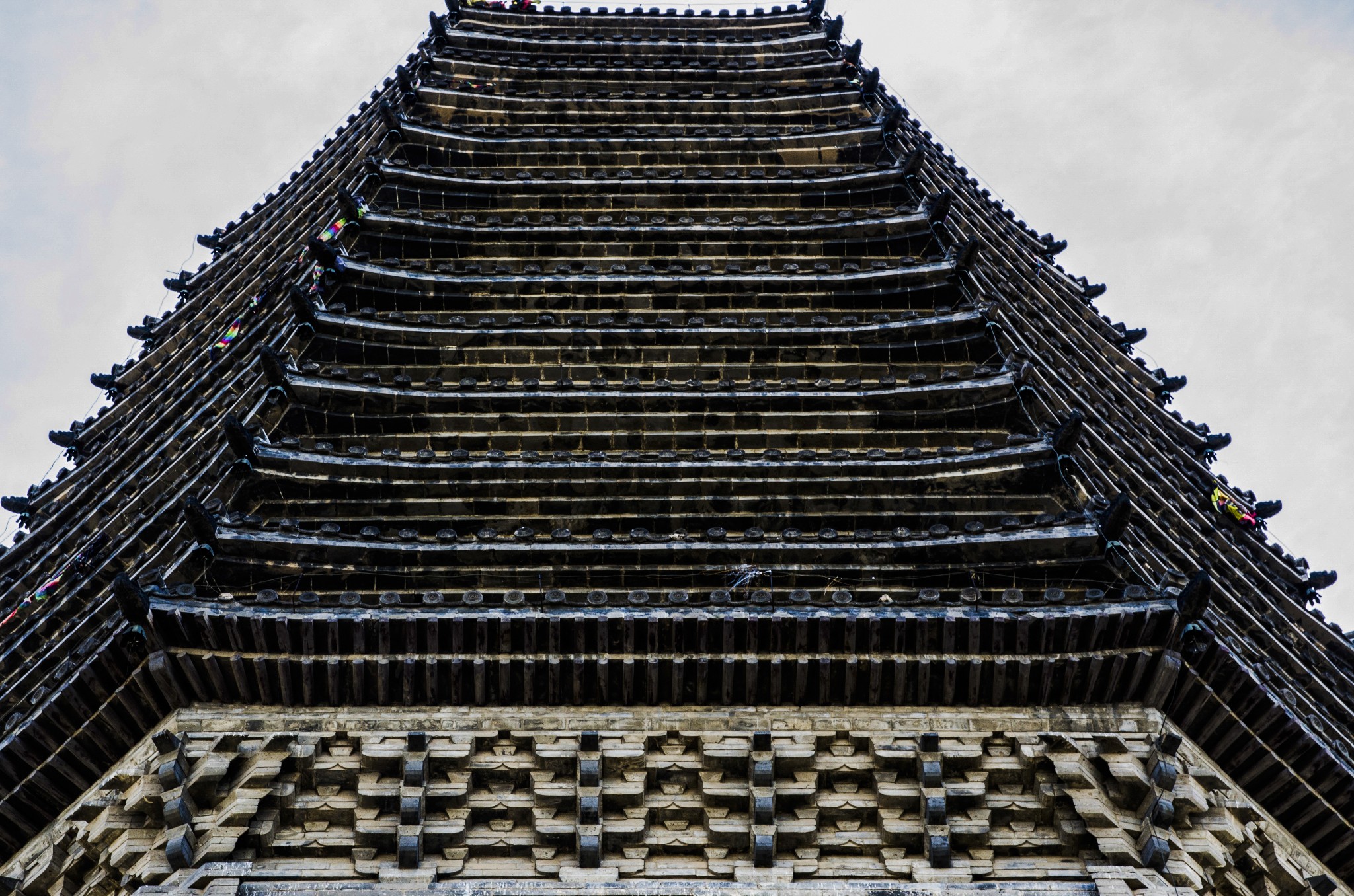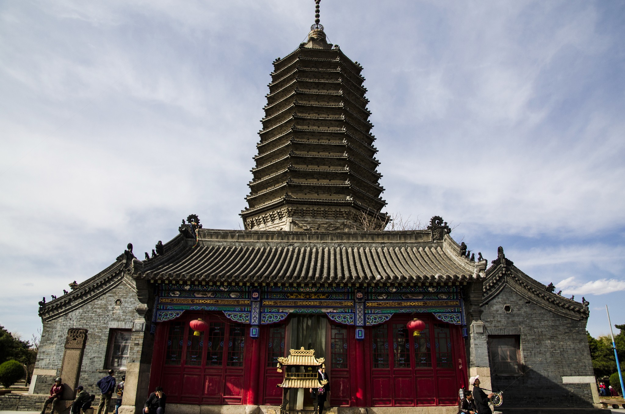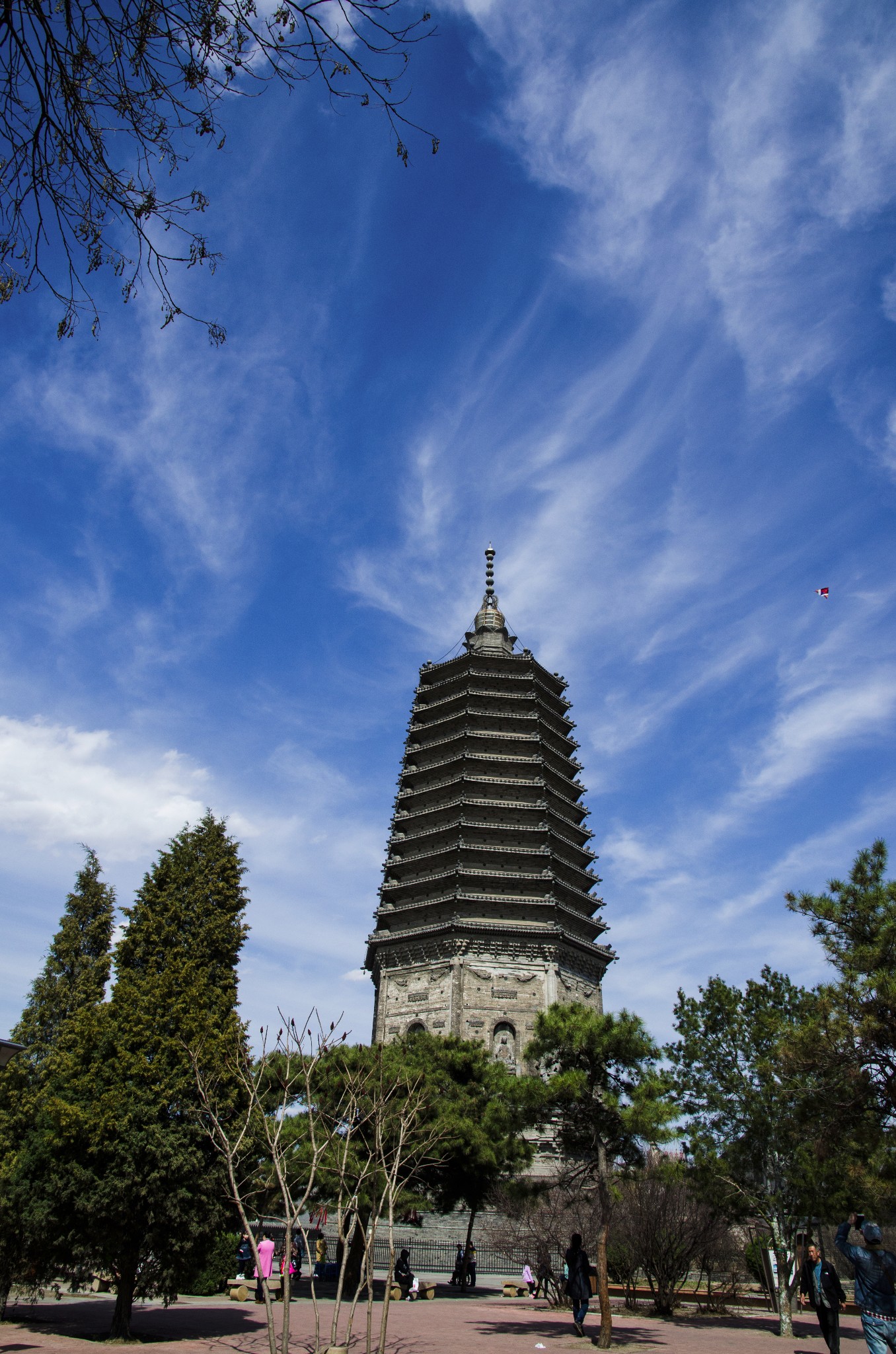 辽代原塔顶,永乐年间被明军用炮打落,现在的塔刹,多方参照同期辽塔重修。