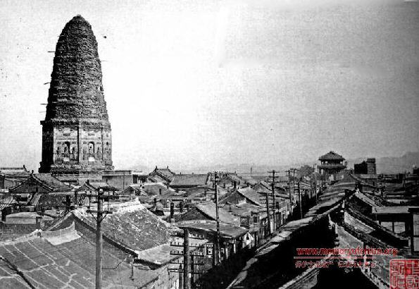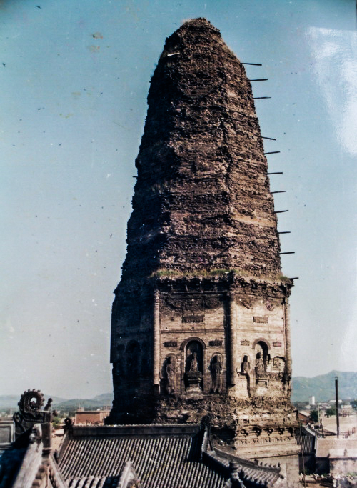 老照片中的古塔,像一穗苞米棒子,佛像尚在、密檐俱无。