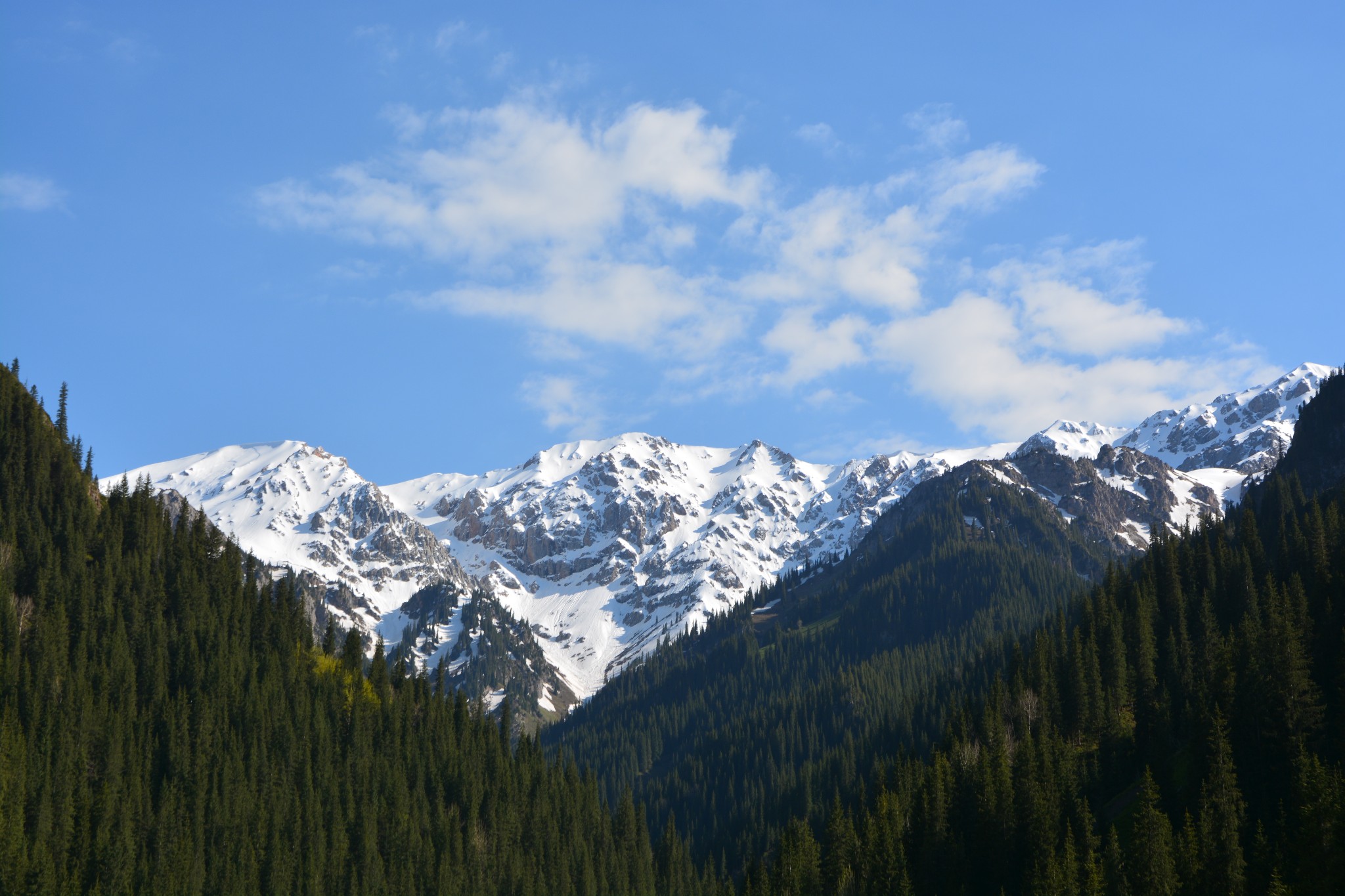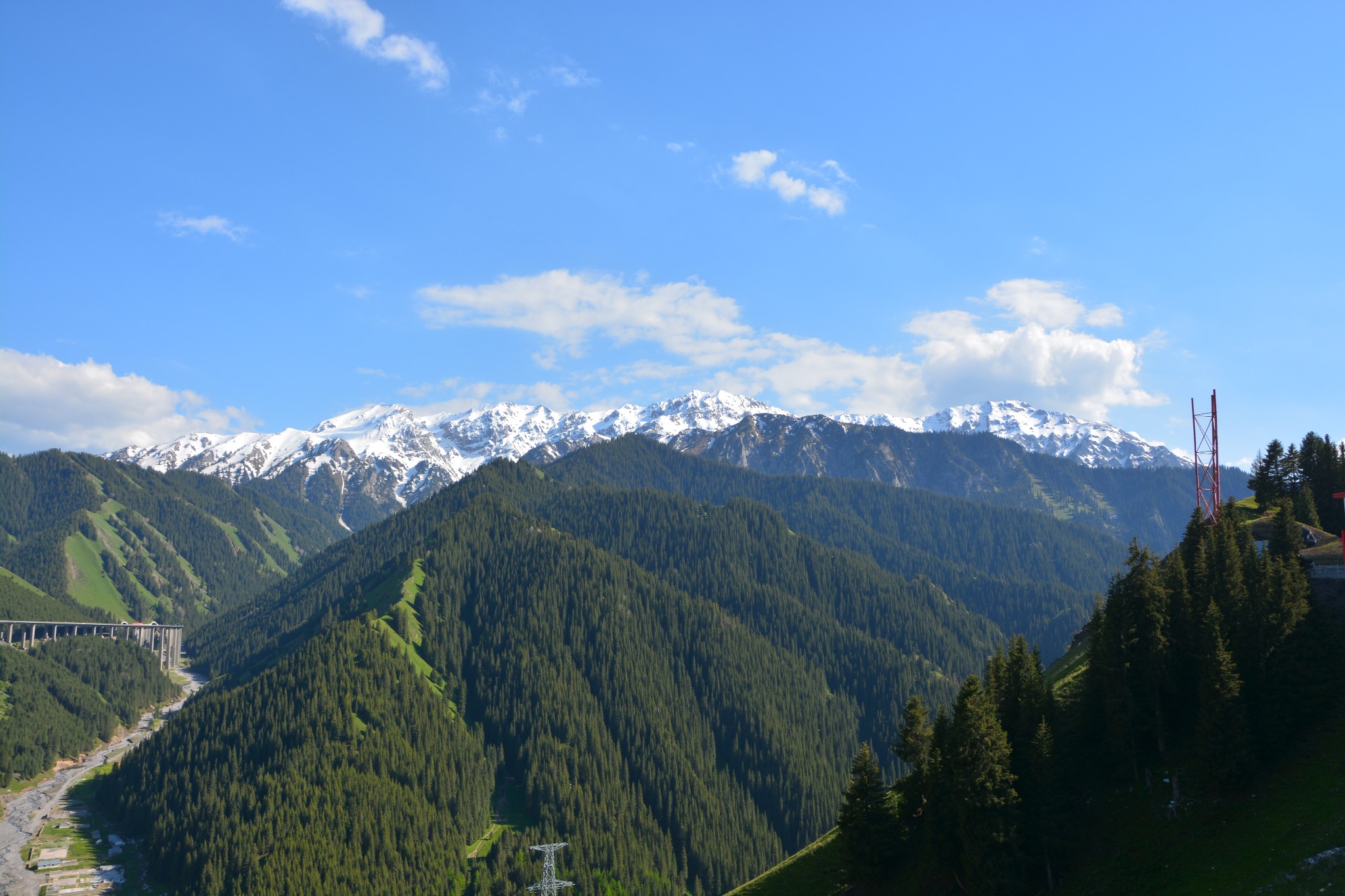 从伊宁到那拉提草原,仅是路上的风景就已足够吸引眼球了,沿着216国道走走停停,差不多在中午时分才赶到那拉提镇。看网上的攻略,都说进门后要换乘景区大巴,不能自由活动,没想到在售票处询问后,被告知居然可以200元/人的价格自己开车进入景区,这真是一桩让人喜出望外的事情。后来的事实证明,这200块的代价真是再值得不过了。