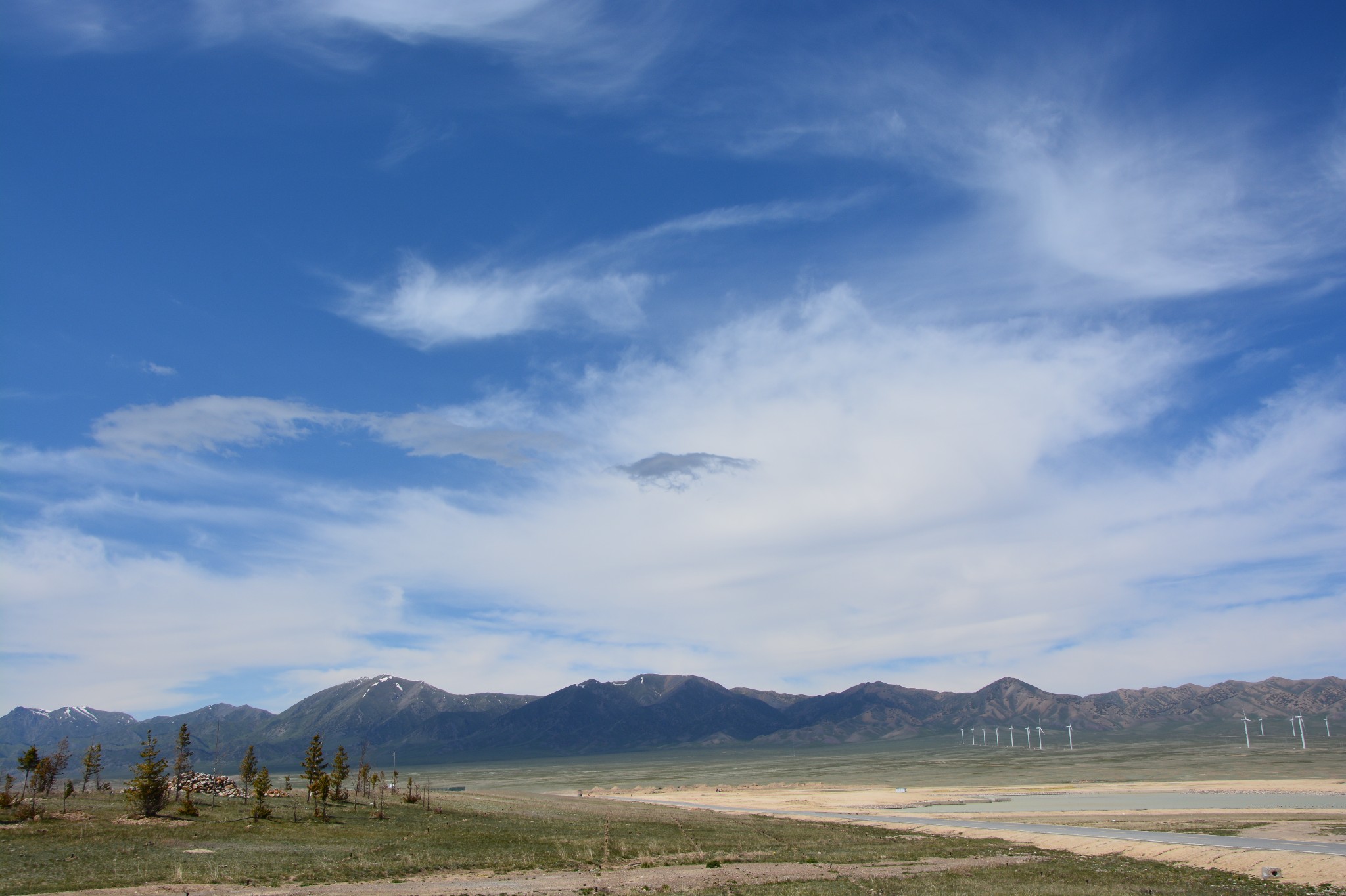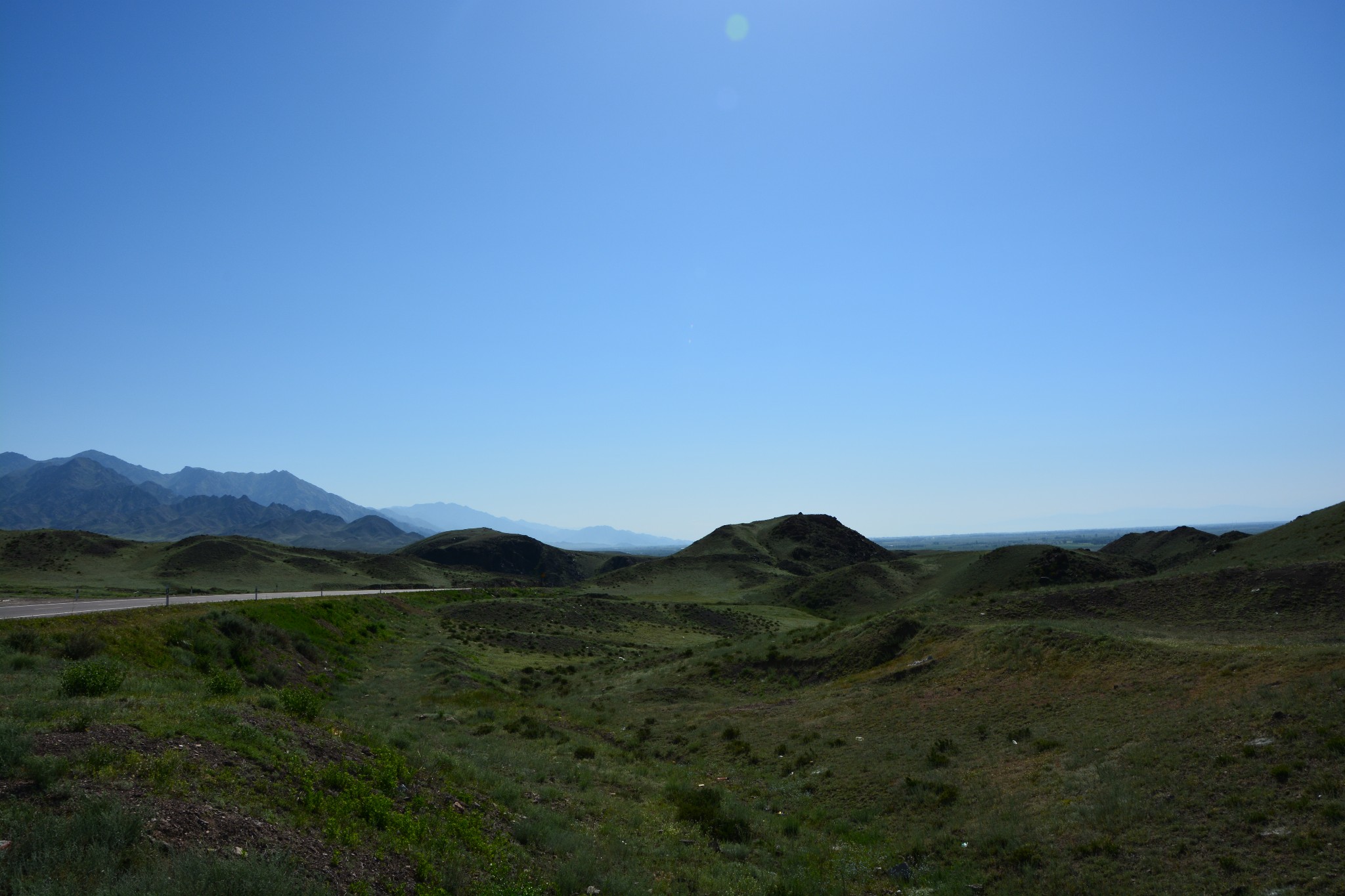 在乌鲁木齐逗留一日,稍作休整,我们在一个朝阳初升的清晨,驱车一路向西。连绵数百里的雪山在远处一路相随,而随着渐渐远离城市,道路两侧的植被也从笔直清癯的杨树变成了紧贴地面生长的沙棘,无边无际的戈壁滩似乎永无止境,随随便便几百公里就这么开了出去,真是应了人家跟我们说的一句话,不来新疆不能深刻体会中国疆域的博大与辽阔,有那么一瞬间,我甚至以为就要这么一直开到地老天荒。
