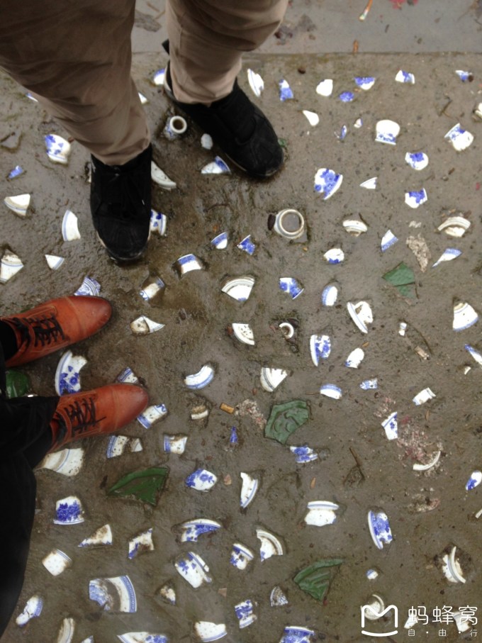 从7天酒店出发,大概走二十分钟,沿路隐约能看到瓷都的影子,有卖陶瓷的店面,路上有碎瓷片铺就的路面,很漂亮,当天天有小雨,更为这座古镇染上了一抹神秘的色彩。