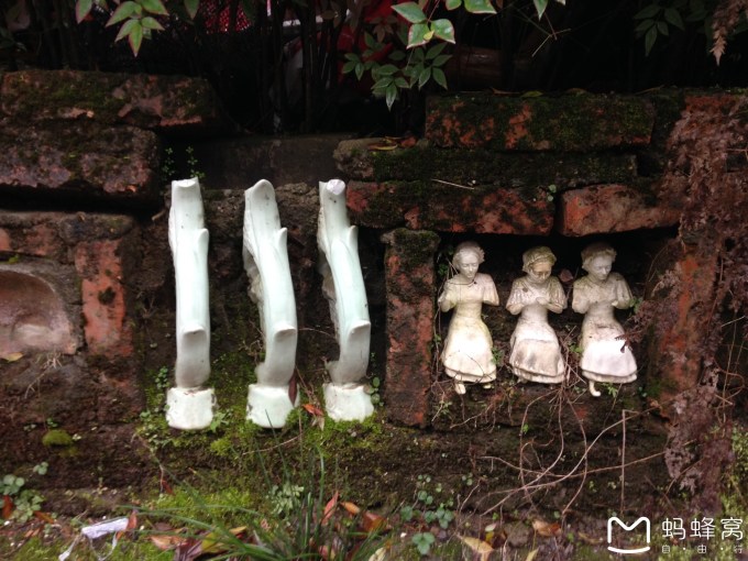 当我仔细去看时,发现每个嵌入泥土中的瓷器都有或多或少的缺陷,而他们就这样聪明的将残次品利用起来,形成一道独特的风景线。