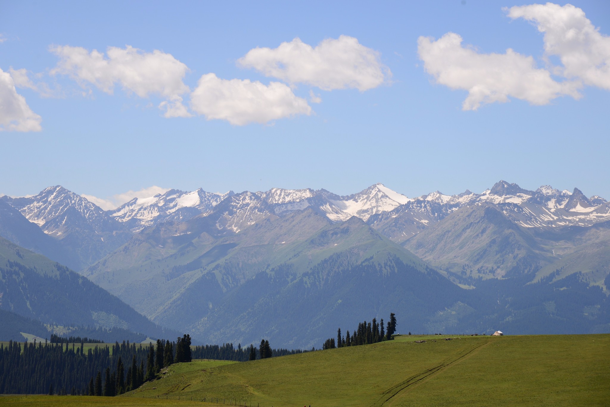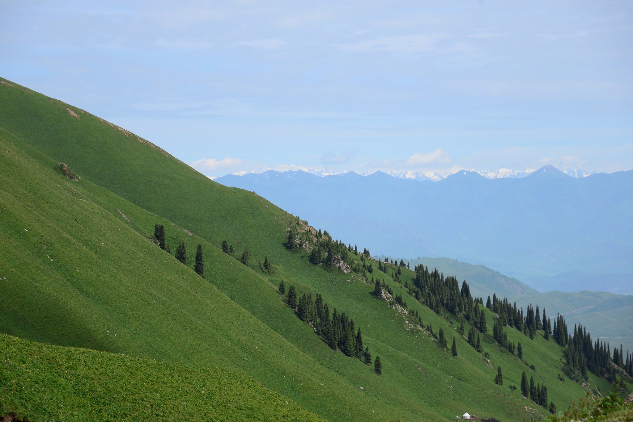 出发前,天气预报非常的差,几乎天天的小雨,新疆草原雪山这样的地方,暴雨不可怕,最讨厌的就是阴天小雨,那几乎意味着什么也看不到。直到登机前,天气预报突然改为伊犁河谷阵雨,似乎有了一些转机。
