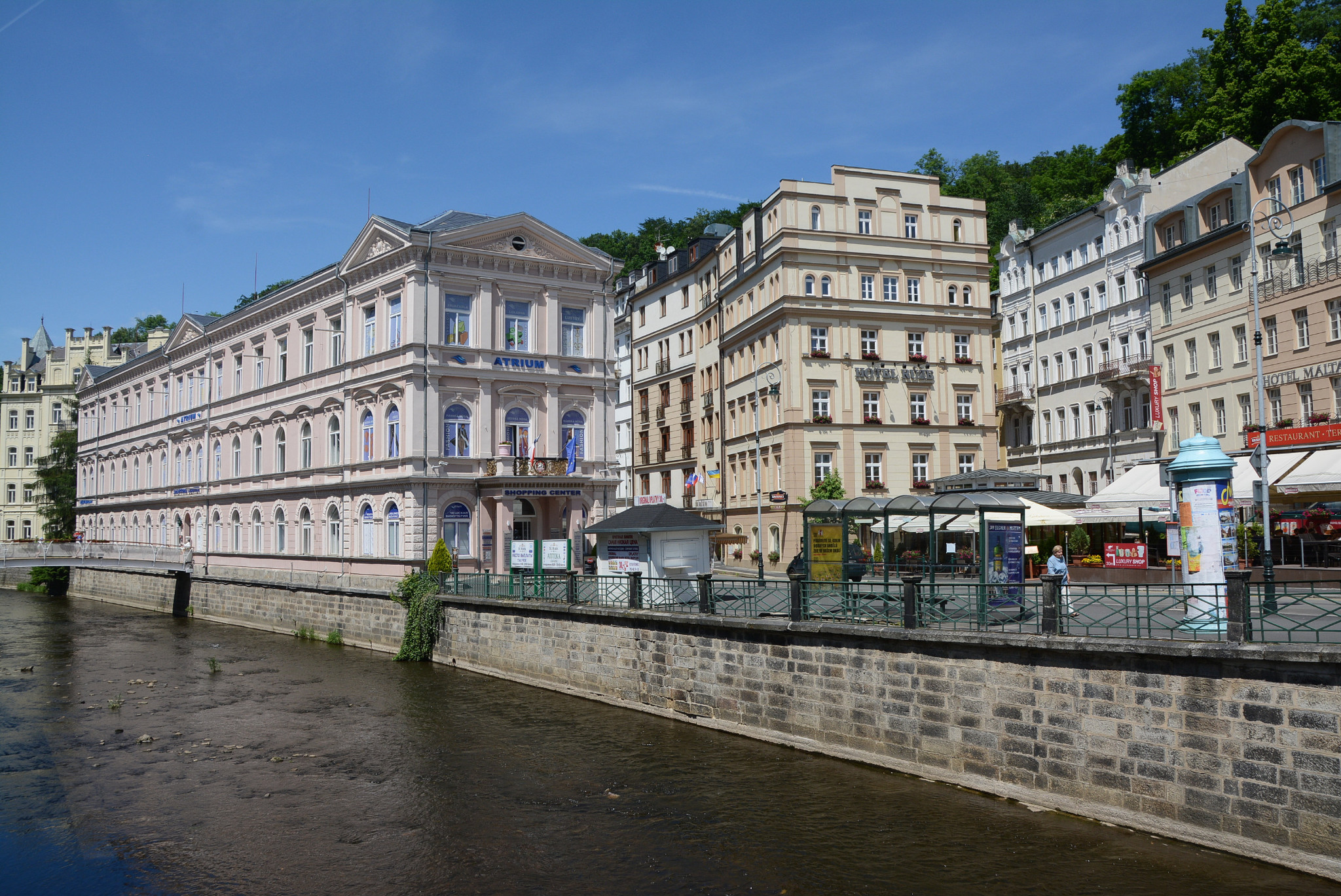 游览小镇常规路线就是沿着泰普拉河走,一般以德沃夏克公园(Dvořákovy sady)和普普大酒店(Grand Hotel Pupp)为起点和终点,单程一到两个小时足矣。