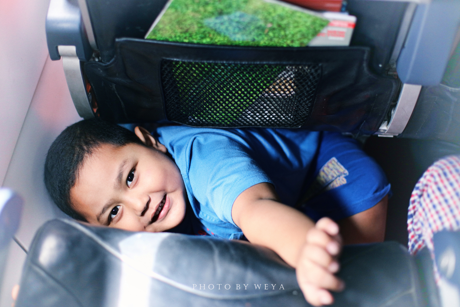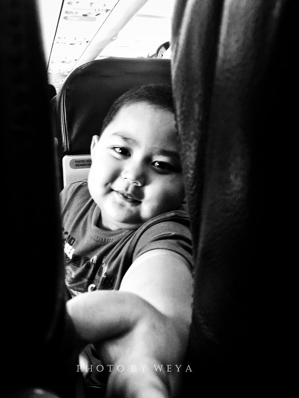 飞往巴厘岛的班机上,坐在我们前面的是一个可爱的小胖娃,应该是印度或者马来西亚的人,狐狸一直不停跟我说:“你看他的手,好肉啊,好想捏啊!”结果没飞多久,小胖娃开始在飞机座位上各种乱动,然后主动把手挪到了我们这边,狐狸当即就没忍住,伸手抓住了他的手............接下来的事,完全出乎我们的意料,当我以为这个小胖娃要被这个不速之客突如其来的动作吓懵的时候,他居然很享受的开始了反抓,然后,就变成了我们互撩的过程,几个小时的飞行过程,我们抢他的玩具摸他的手和脸,他也不停的摸我们的手抓我们的腿和我们躲猫猫,当他抓不过我们的时候就抱着他妈妈叫,而他妈妈坐在旁边笑得合不拢嘴。虽然我们全程都没有说一句话,可是我们也开心得像只有三岁一样!(当然,当你有了孩子后,随时都可以有变回孩子的感觉!)