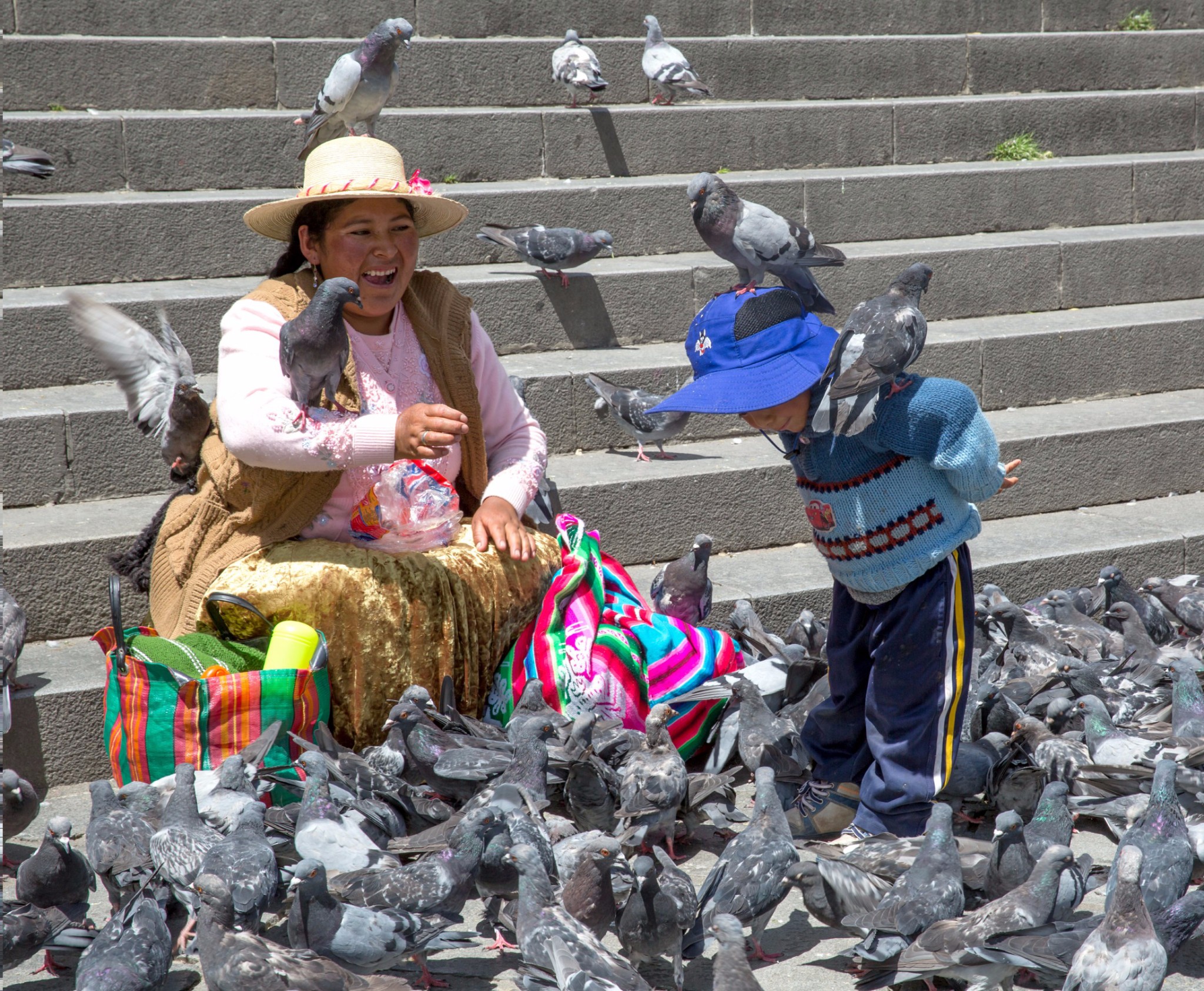 穆里略广场(Murillo Plaza)留给我印象最深的恐怕当属鸽子了吧。闲暇时,玻利维亚人喜欢来穆里略广场喂鸽子,大人和小孩都会买一些玉米来喂这象征着和平的使者,好一片和谐热闹之景。