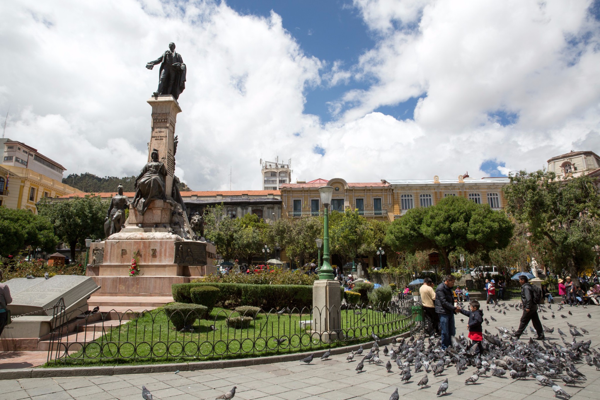 在拉巴斯市中心的广场中央耸立着一座20米高的铜像,为的是纪念玻利维亚的民族英雄佩德罗·多明戈·穆里略,他是南美民族解放运动的先驱,这个广场也正是以穆里略的名字命名。节庆时节,玻利维亚人会来到穆里略广场,将鲜花献给他们的民族英雄。