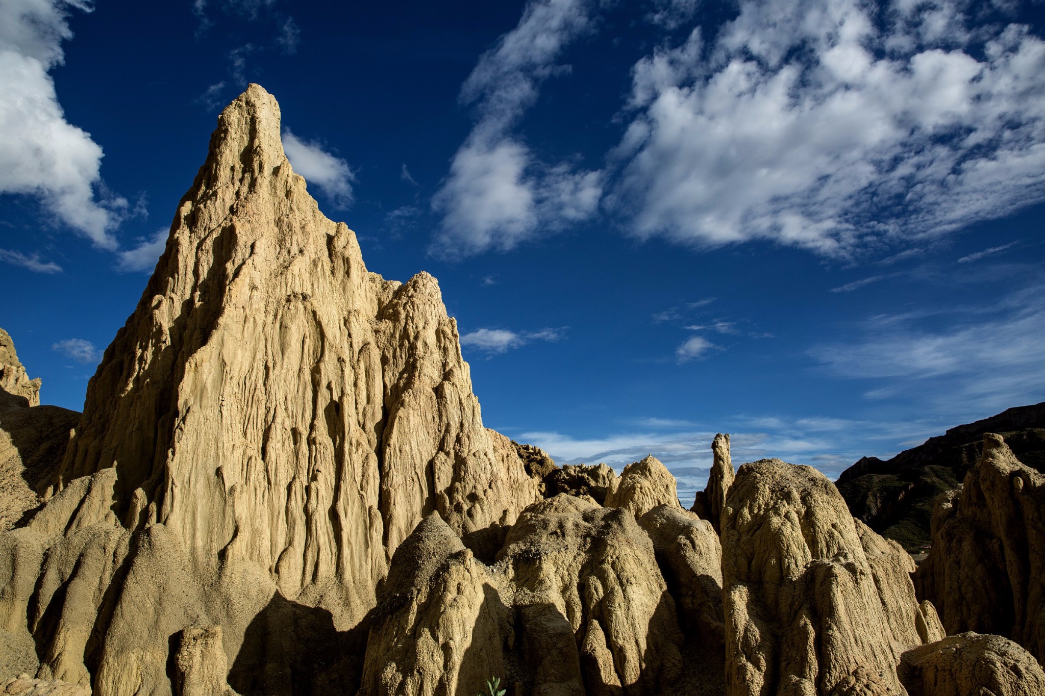 月亮谷由古代火山爆发而形成,历经千百年的风吹日晒,最后才呈现出这突兀如月球表面的石林奇观。