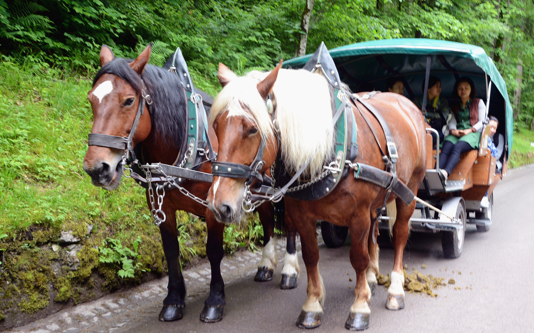 新天鹅堡上山的四轮马车,整体上是仿中世纪风格,坐上去或许能体验一下那年代贵族的感觉吧。