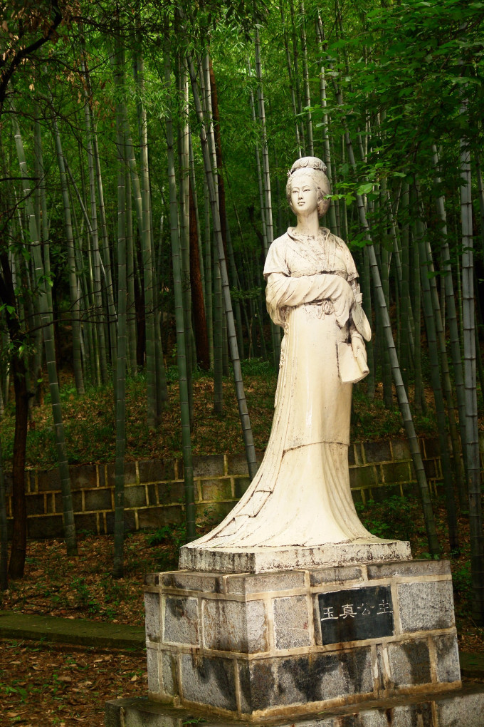 一片翠竹掩映着皇姑坟,这就是皇姑泉景区,由皇姑泉、皇姑坟、玉真公主像和望姑桥等组成。