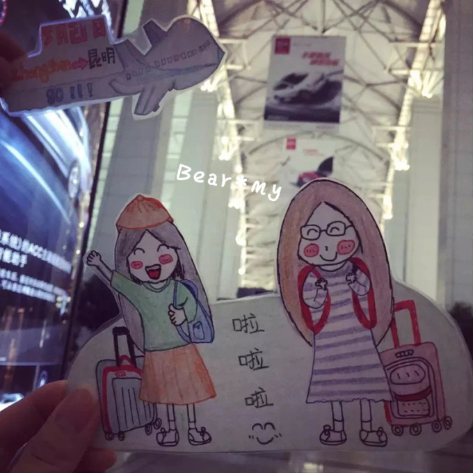 候机的时候刚好碰上某个明星登机,于是跟着一大群人一直追着跑(PS:一开始都不知道是谁,后来好不容易看见了才知道原来是yy)哈哈哈