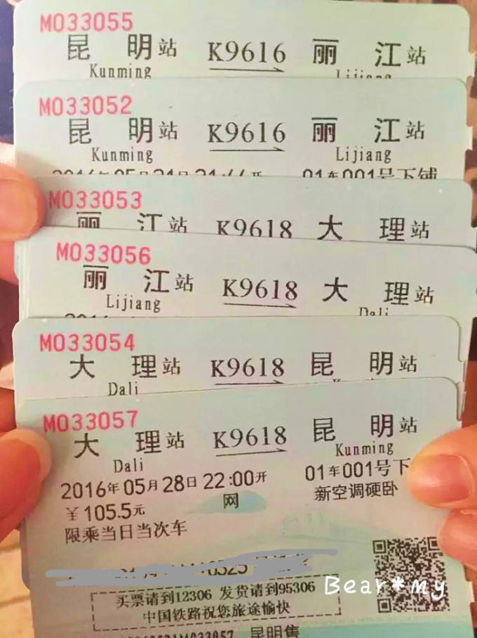 (踏上了去往丽江的火车),第一次睡火车卧铺,比我想象中好太多,因为之前去厦门坐的硬座一股味道座位还很脏,这里的火车起码很干净,我终于坐上了绿皮火车