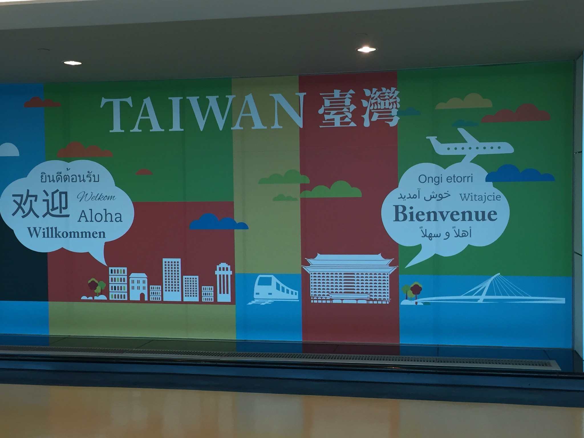 飞机降落在台湾桃园国际机场,台湾,我们来了!