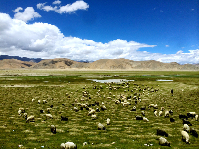 一大早,我们上了开往吉隆的大巴。一路上,汽车沿着弯弯曲曲的公路,开始向更高的海拔爬升。车里放着欢快的藏族歌曲,在高原的蓝天和白云下奔驰。我们路过了湛蓝的湖水,开阔的旷野、安静吃草的羊儿和牛群……车开到最高处,可以远远看到喜马拉雅连绵的雪山,如雪域众神矗立在天边。