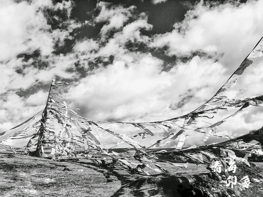 远远地看见了连成一片的经幡 李哥说那就是拉脊山了