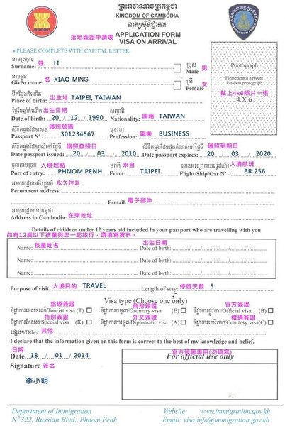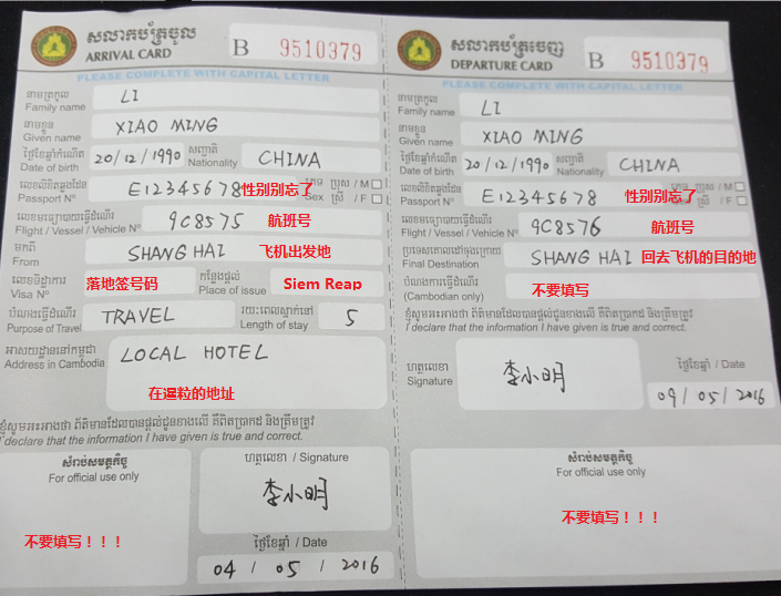 入关口右手边先办理落地签证。下图很清楚的显示需要填写的东西