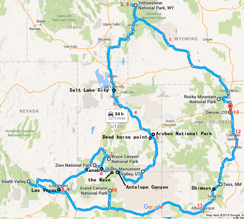时间又少又想多去地方的盆友们可以参照下我们的路线哈,在最短的时间内基本上把美西所有的主要景点都去了一遍,就是有点走马观花而且有些累。。。