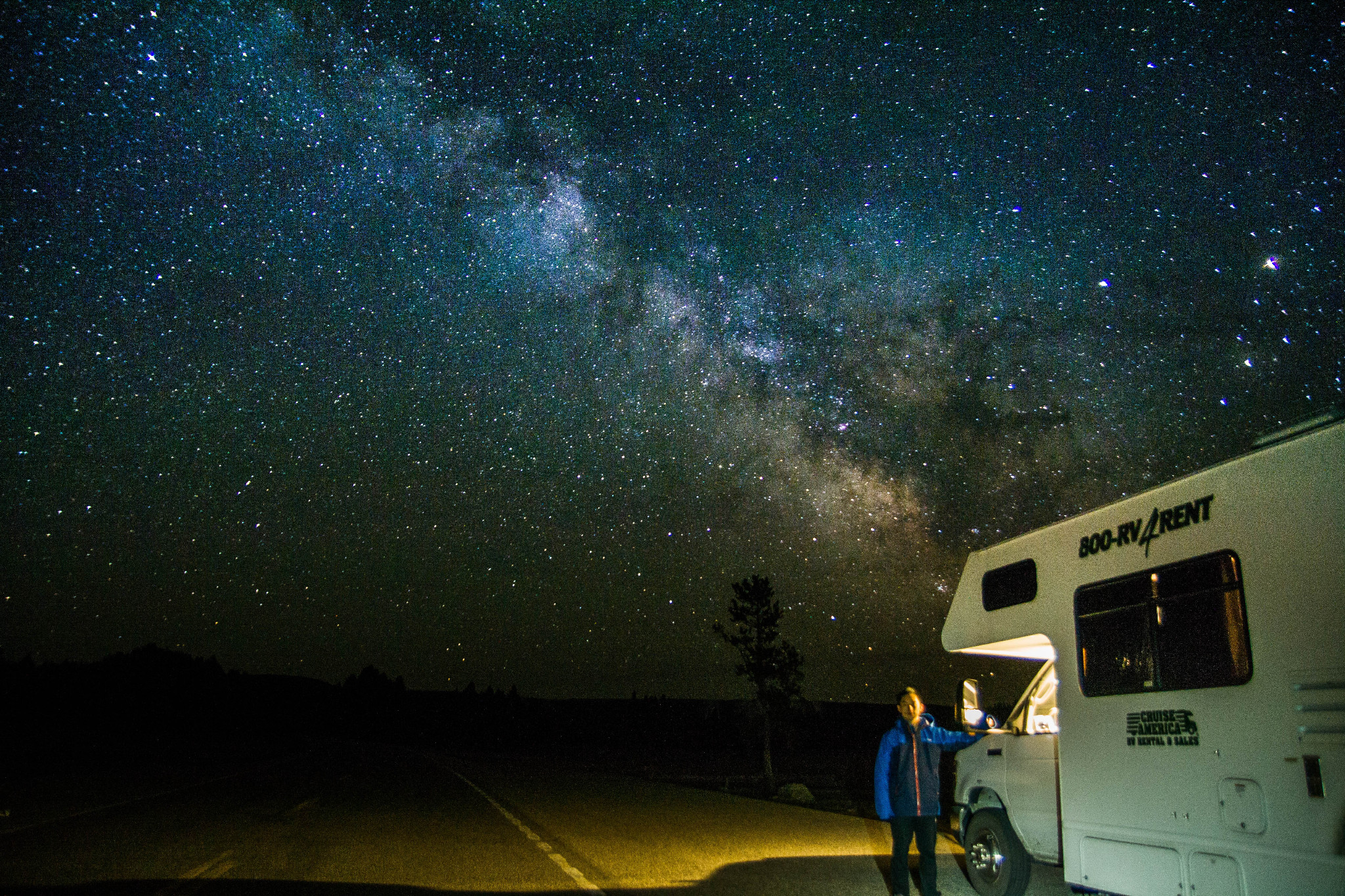 除了体验房车,我们这次旅行另一大目的就是希望能拍到银河。由于平时一直在光污染严重的大城市生活,仰望星空已经成为了一件很奢侈的事。从未见过银河的我们被网上的种种照片深深吸引,于是决定利用这次来美西这一大块暗夜区饱览星空。