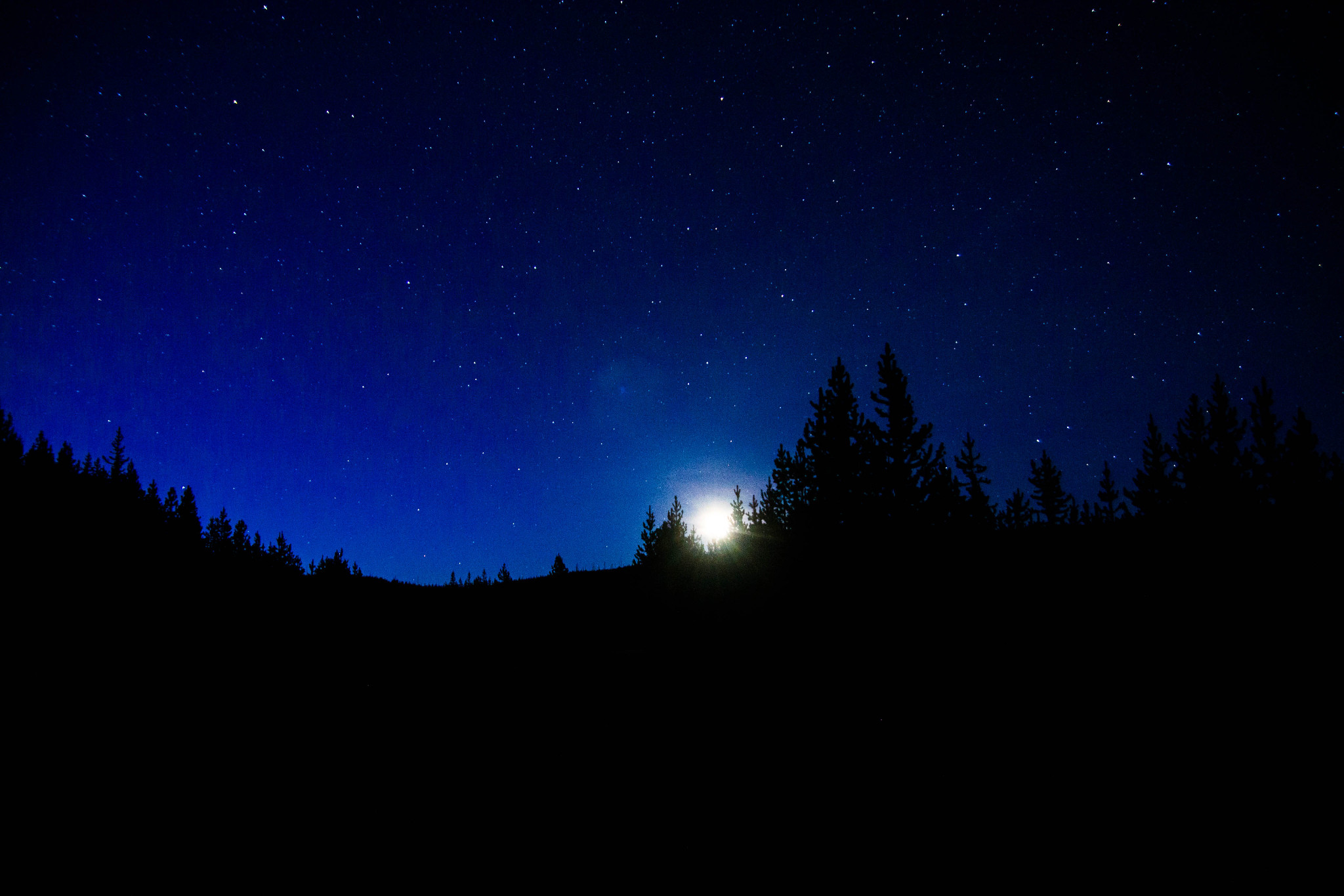 通过查询光污染地图,我们选定了这次旅途中的几个最暗的地方作为观星宝地:黄石公园,大拱门,布莱斯峡谷,大峡谷。我们去的这几天整好是在新月附近,对观星非常有利。但是五月份的银河要凌晨1点之后才会慢慢升起,直到3点多角度才会稍正,这就意味着我们必须要凌晨两三点爬起来,第二天一大早还得继续出发,还是比较累的。最后我们只在黄石和大拱门看到了银河,到布莱斯峡谷和大峡谷时因为是阴天所以就放弃了。