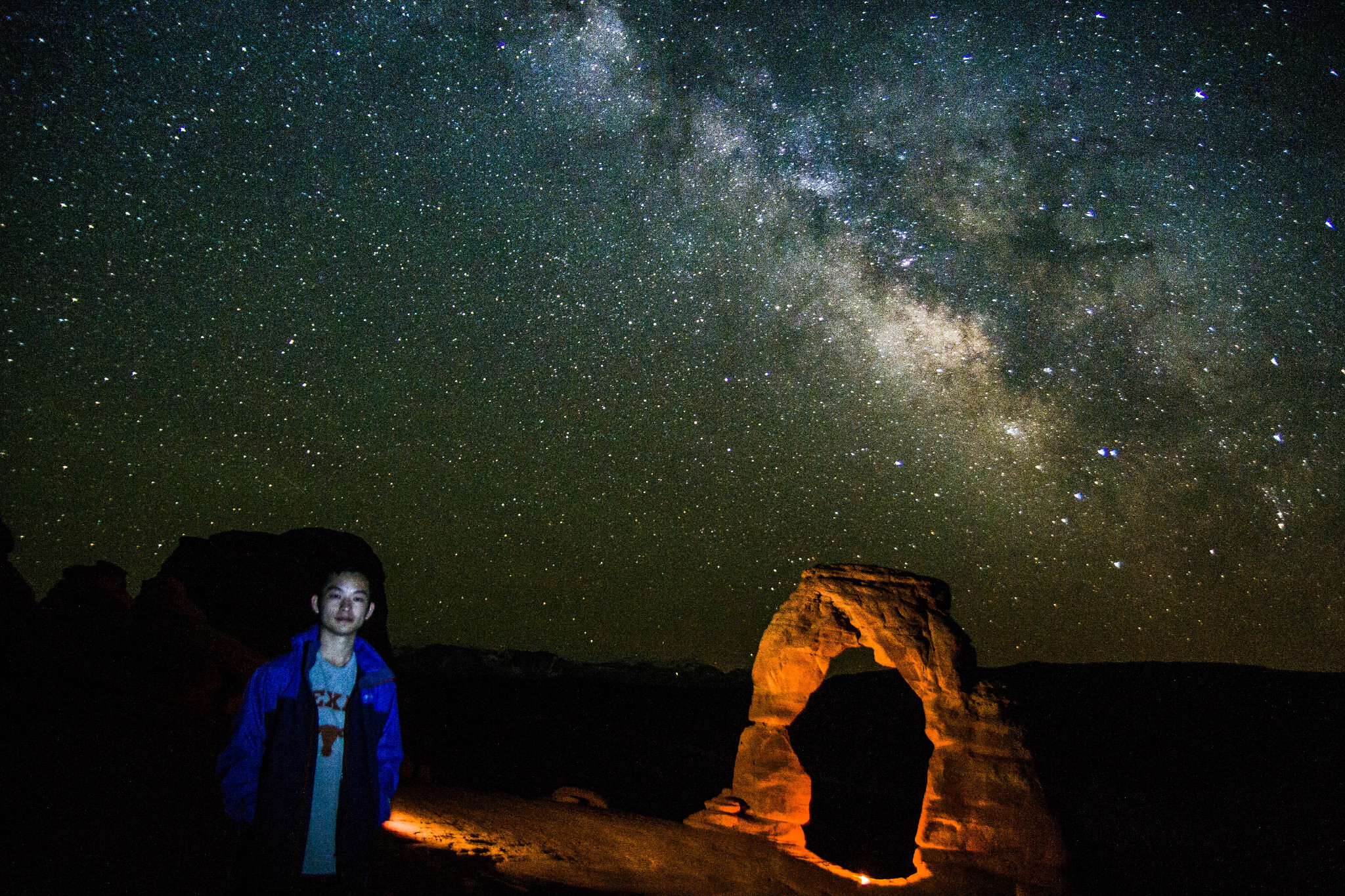 拱门国家公园也是美国一大暗夜区域,公园内的精致拱门(Delicate Arch)是犹他州的地标,也是拍摄星空的绝佳前景。这次精致拱门的观星活动也成为了整个旅途最难忘的回忆。