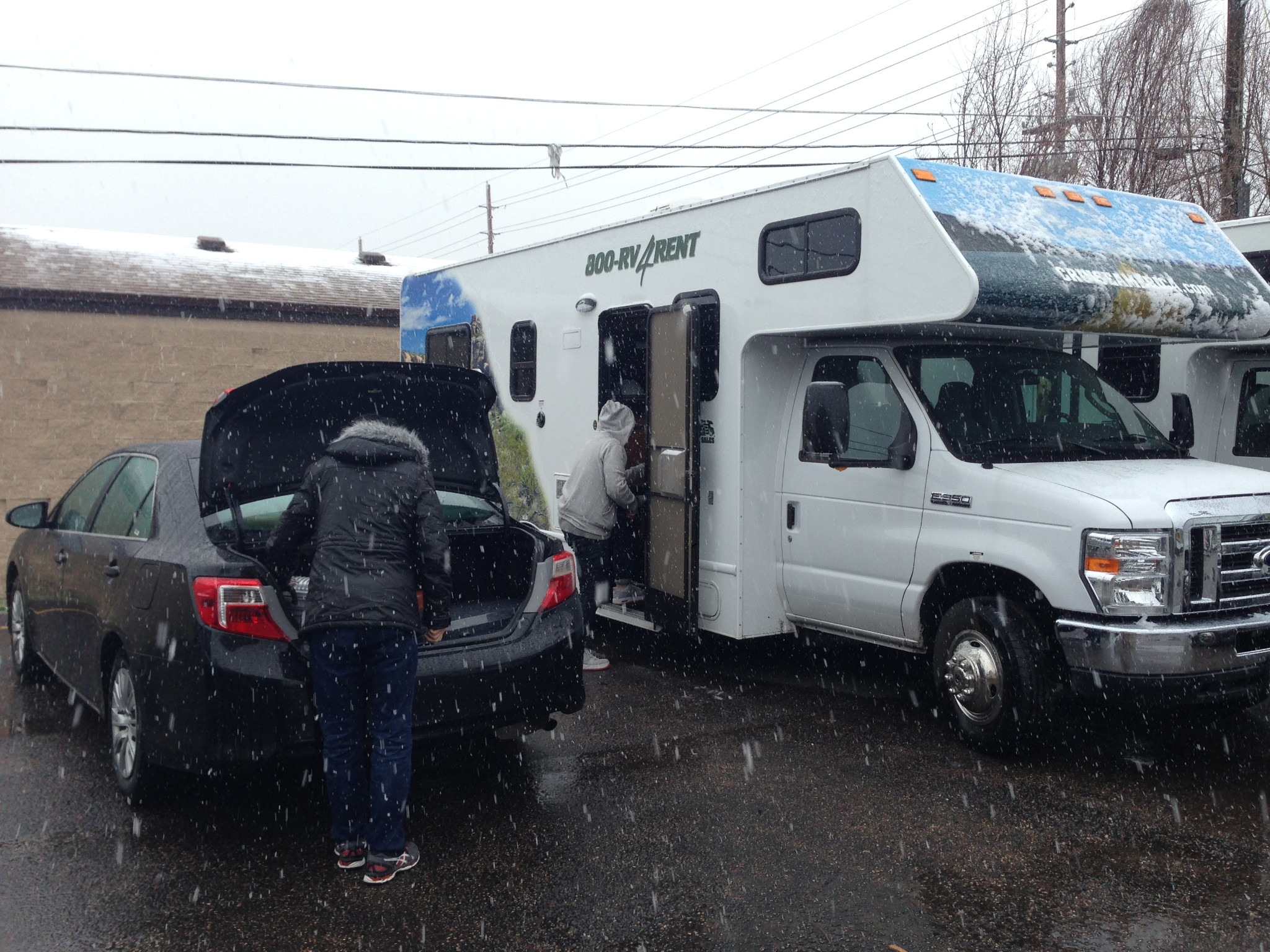 抵达 租车 地,把小车上的行李全都转移到房车上