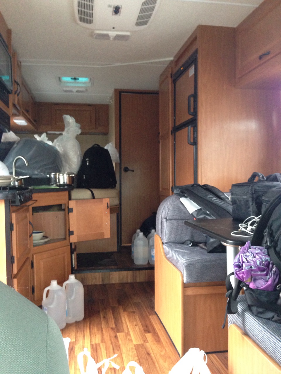 由于房车的干净水箱(fresh water tank,提供厨房水龙头和淋浴的水)和脏水箱(black water tank)大小有限,所以一般两天左右就要给干净水箱补水,给脏水箱倒水。所以隔一段时间就要找一个有sewage和water服务的营地。车上的插座,微波炉,冰箱则是由蓄电池供电,一般也是两天要给电池充一次电,营地的electrical service便可以满足,只要晚上一直接着营地的插座就行了。车上的煤气灶则是用燃气的,如果做饭很频繁则需要每两三天补充一次燃气,很多营地也都有。如果实在找不到合适的营地,路上很多加油站也提供fresh water和燃气的补充以及black water的处理。