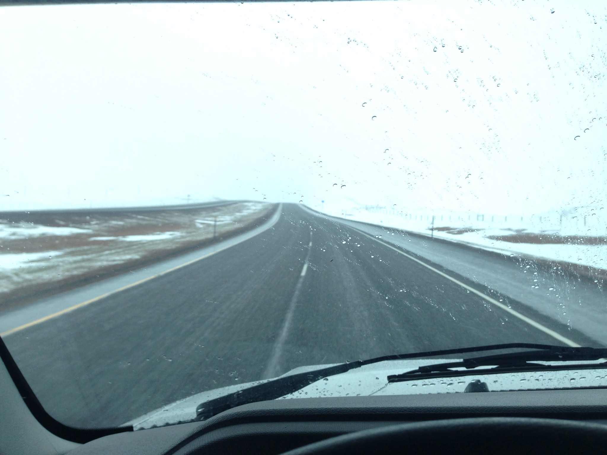 进入怀俄明的高速,路上几乎看不到什么车,窗外下着小雪。