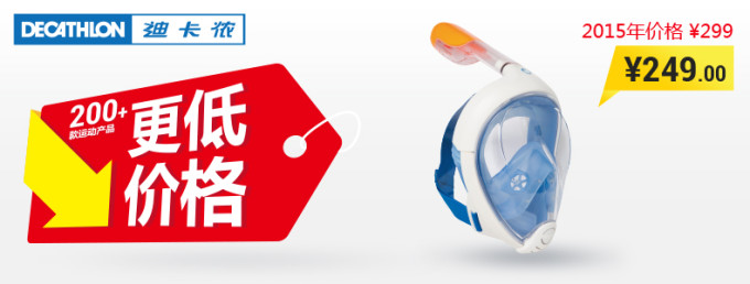 因为是菜鸟,害怕用嘴呼吸下水会不习惯,我们在迪卡侬购买了潜水面罩,刚推出的新产品,有折扣,249元。