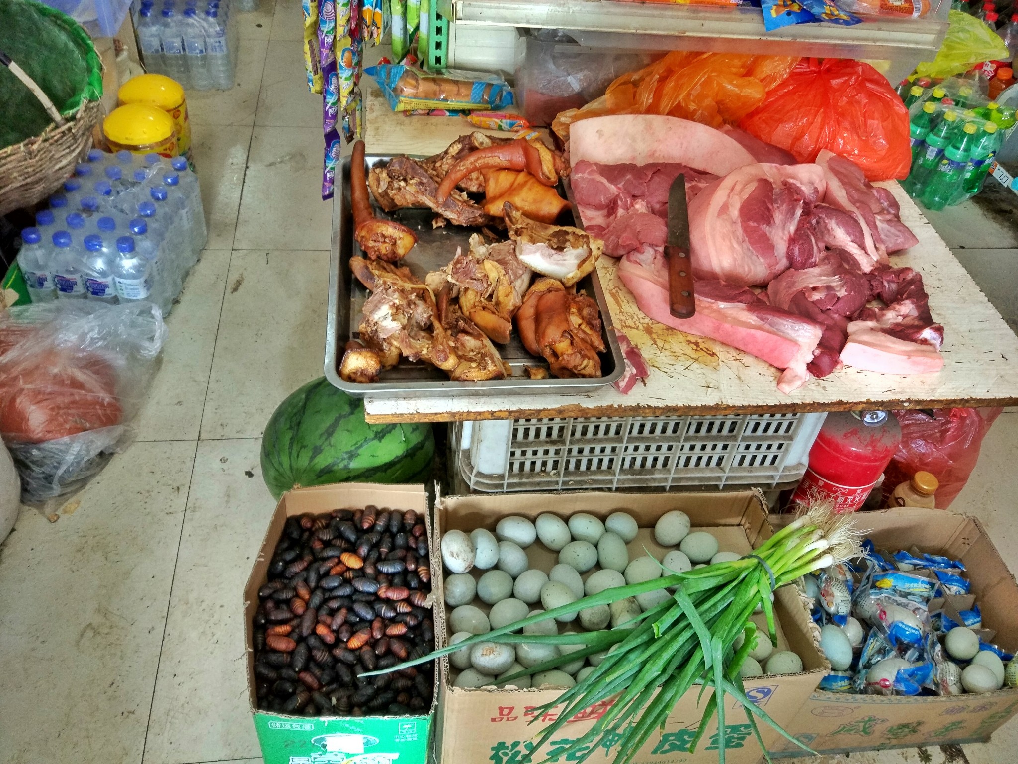 逛了当地的小超市,居然连生猪肉都卖的