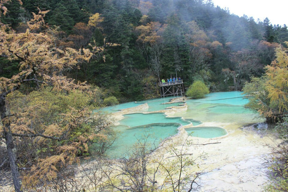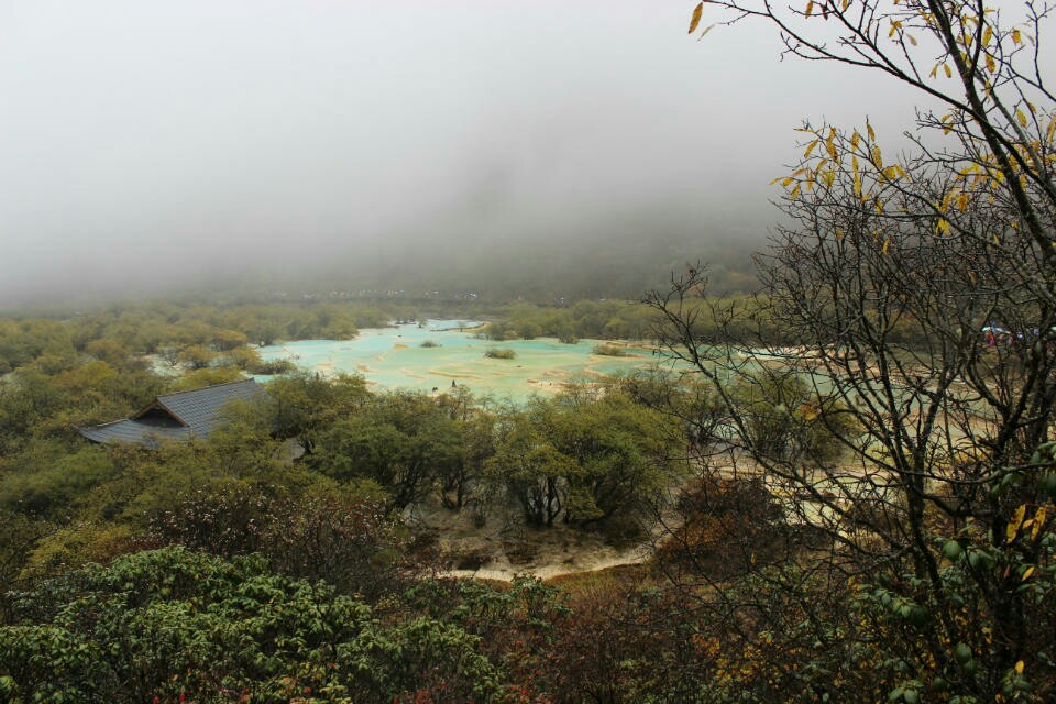 黄龙的美在于它烟雾缭绕中若隐若现的色彩,以及那随着光线变换颜色的人间瑶池。