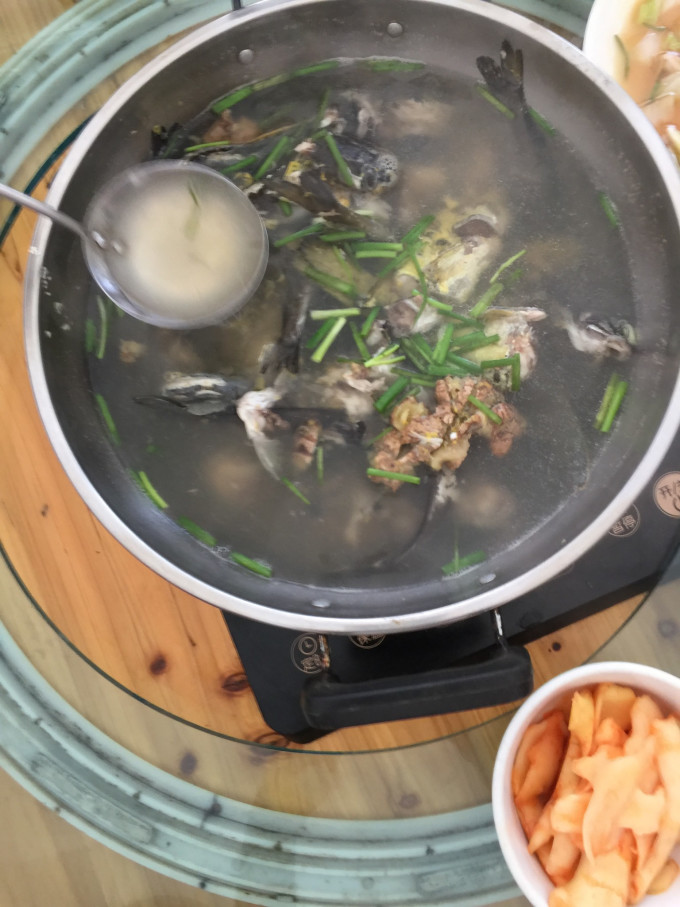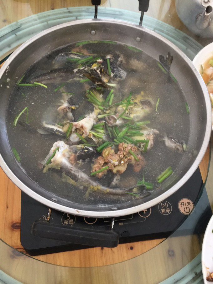 熬出来的鱼汤端了上来,保留了鱼儿自身的味道,鱼皮很爽滑,鱼肉洁白细腻,鲜嫩清香。吃角角鱼也有方法,先用筷子挟住鱼头,然后将整个鱼身放进口里,用嘴一抿、一咂、一吸,鱼肉就被舔干净,只剩下鱼骨架了。如果怕刺,就用筷子挟着鱼在嘴边慢慢吸舔,鱼骨和鱼肉自然分离了。尤其这鱼汤,自然鲜美,认人回味悠久。据说黄颡鱼作为药用常常取其全鱼,其肉性味甘、平,有祛风、利尿之功效,可用于主治水肿、喉痹肿痛等症。不管怎么说,这都柳江的水,这都柳江的鱼,令人难以忘怀。