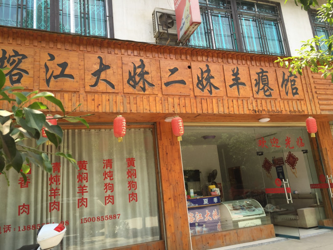 我们到达从江县城正是中午,因为急着要到岜沙苗寨去,想在县城大街上找一家饭店吃了就走。不想,车窗外一掠而过“羊瘪汤”几个字,勾起了我的好奇,我大叫停车。因为在前一天晚上大家住在榕江县,我已经观察到县城好几条大街旁,都开着羊瘪汤牛瘪汤的店,而且有的店面辅不止一间,装修显眼,看来牛、羊瘪汤店在这一带非常有名。我只知道与牛羊肉有关,想到了“鞭”之类,因为与“瘪”字读音差不多。