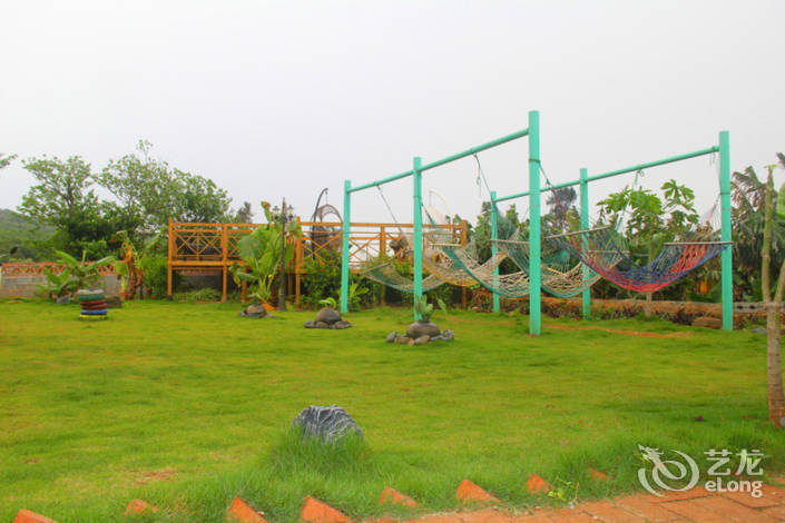 院子里呢有很多吊床、吊椅之类的,天气好可以在这里晒晒太阳。