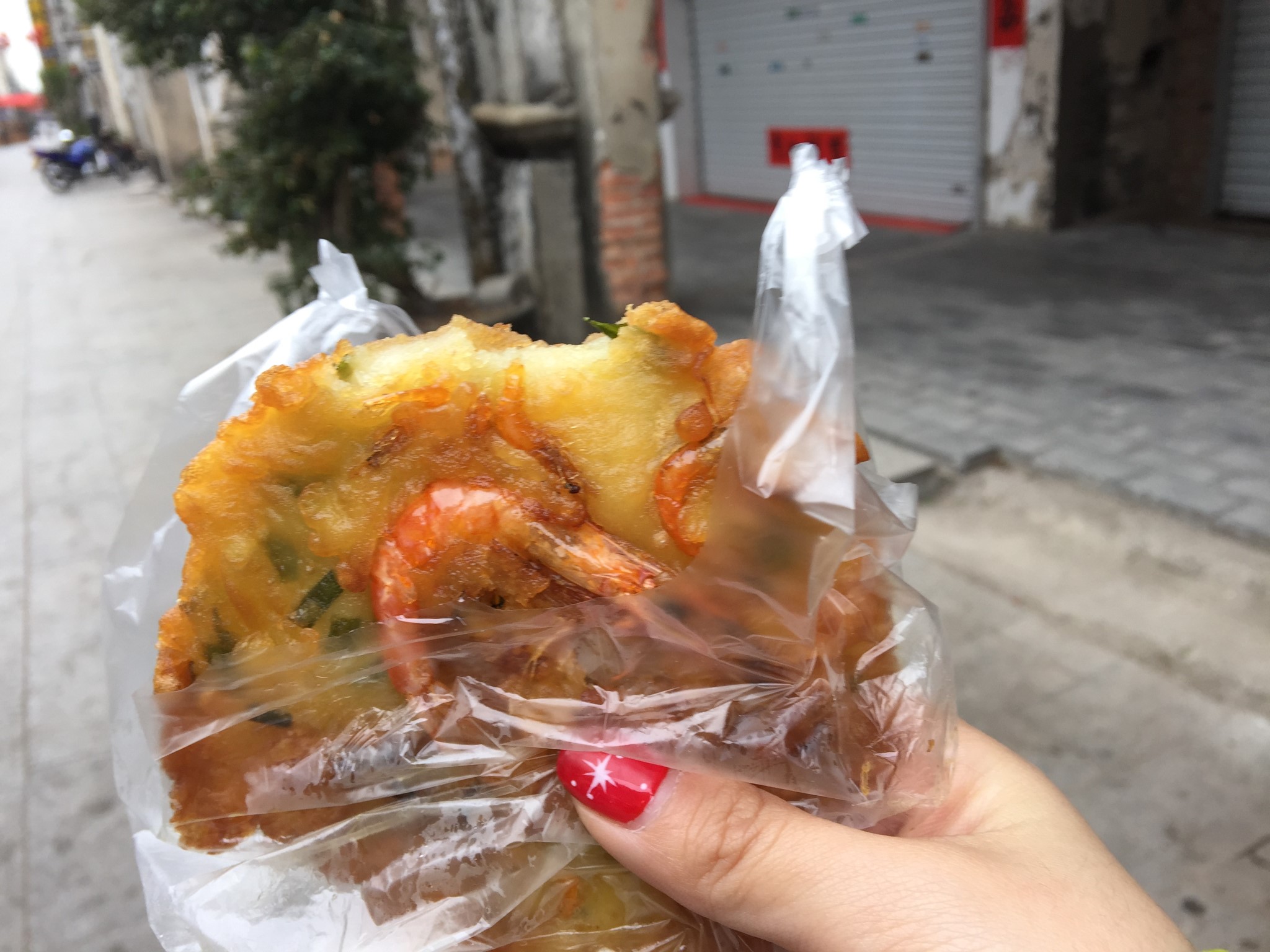 在老街上买了一份虾饼,脆脆酥酥的很好次,不过就是新鲜炸出来的有点烫手。。。