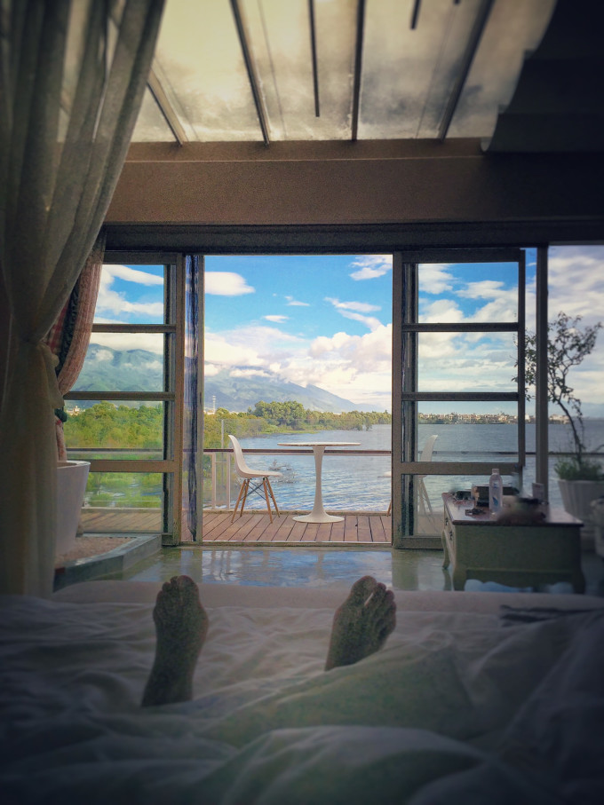 4.酒店外景很美(如下图),所谓星空房,顾名思义,房内屋顶可以打开帘幕,直接观星。虽然号称星空房,但由于天空阴天,再上房顶玻璃不够干净,所以看不见星星。