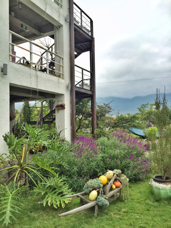 3.酒店外景很美(如下图)原创很足,木质结构+钢筋做旧+花海世界。