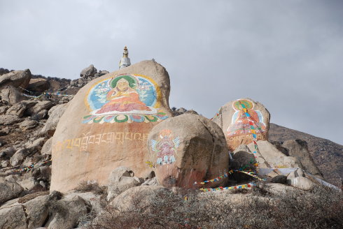 哲蚌寺里还有一个比较著名的地方。据说当时在建寺之前,在山上的一块石头上出现了文殊/travel-scenic-spot/mafengwo/144576.html{菩萨} 的画像,因此这个地方也被视为了圣地,由于是下午去的,这个装有文殊画像石头的寺庙已经关了,让我们有些遗憾。