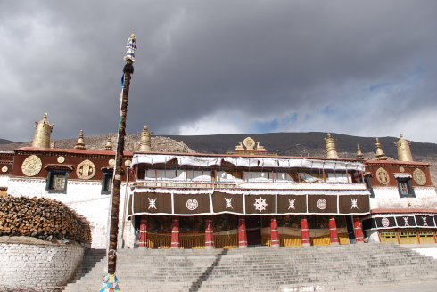 在藏传佛教里,目前在/travel-scenic-spot/mafengwo/12700.html{西藏} 影响最广的是格鲁派,也就是宗喀巴大师对原有藏传佛教进行改革后创新的教派。格鲁派在全/travel-scenic-spot/mafengwo/21536.html{中国} 共有六大寺庙,分别是:甘丹寺、哲蚌寺、色拉寺、扎什伦布寺、塔尔寺和/travel-scenic-spot/mafengwo/101845.html{拉卡} 楞寺,其中前三个寺庙都在/travel-scenic-spot/mafengwo/10442.html{拉萨} ,又称为/travel-scenic-spot/mafengwo/10442.html{拉萨} 的三大寺,而哲蚌寺又是/travel-scenic-spot/mafengwo/10442.html{拉萨} 三大寺之首。其实这三个寺庙距离都不算远,尤其是哲蚌寺,前一段进进出出的总是路过,但一直也没抽出空去看一眼。终于在08年的最后一个周末,我才得以去拜访了一下,由于是下午去的,因此很多殿已经关了,所以初访只能算是走马观花吧。